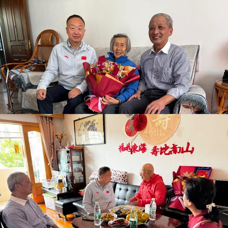 在重阳佳节来临之际,校党委副书记潘勤在退管会办公室主任沈志华及退休党委第六支部书记严惠建、第四块长曹跃宁的陪同下,分别上门走访慰问了张文传、郑琼芳两位百岁老人,代表学校送上节日问候。两位百岁老人很是高兴,表示感谢学校领导的关心,学校领导的关爱使今年的重阳节更有意义!