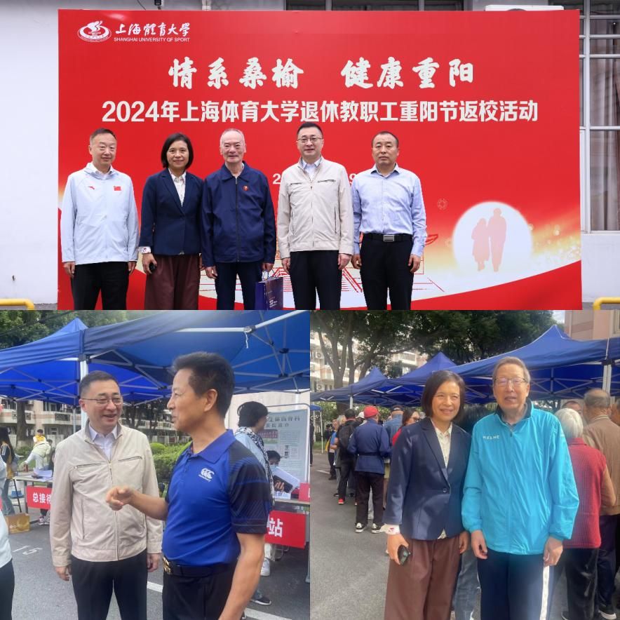 在报到现场,各职能部门、二级学院作为“娘家人”热情接待引导,早早等候老同志的到来。40位身着“黄背心”的学生志愿者分布在不同的岗位,搀扶老人、端茶送水、游戏指导、接待引导,同学们热情阳光的笑容和服务让老同志感受到回到学校的温暖。今年返校活动一改往年的大会庆祝形式,以义诊咨询、游艺活动、休闲茶歇等形式,让老同志度过健康、快乐的“回娘家”的欢聚时光。退休党委(退管会)、老教协、退教协共同举办了庆祝中华人民共和国成立75周年和敬老节主题摄影、书画作品展,学校开放了体育教育博物馆、中国武术博物馆。为老同志们送上最温暖最实在的重阳关怀,显现出欢乐温馨的节日氛围。
