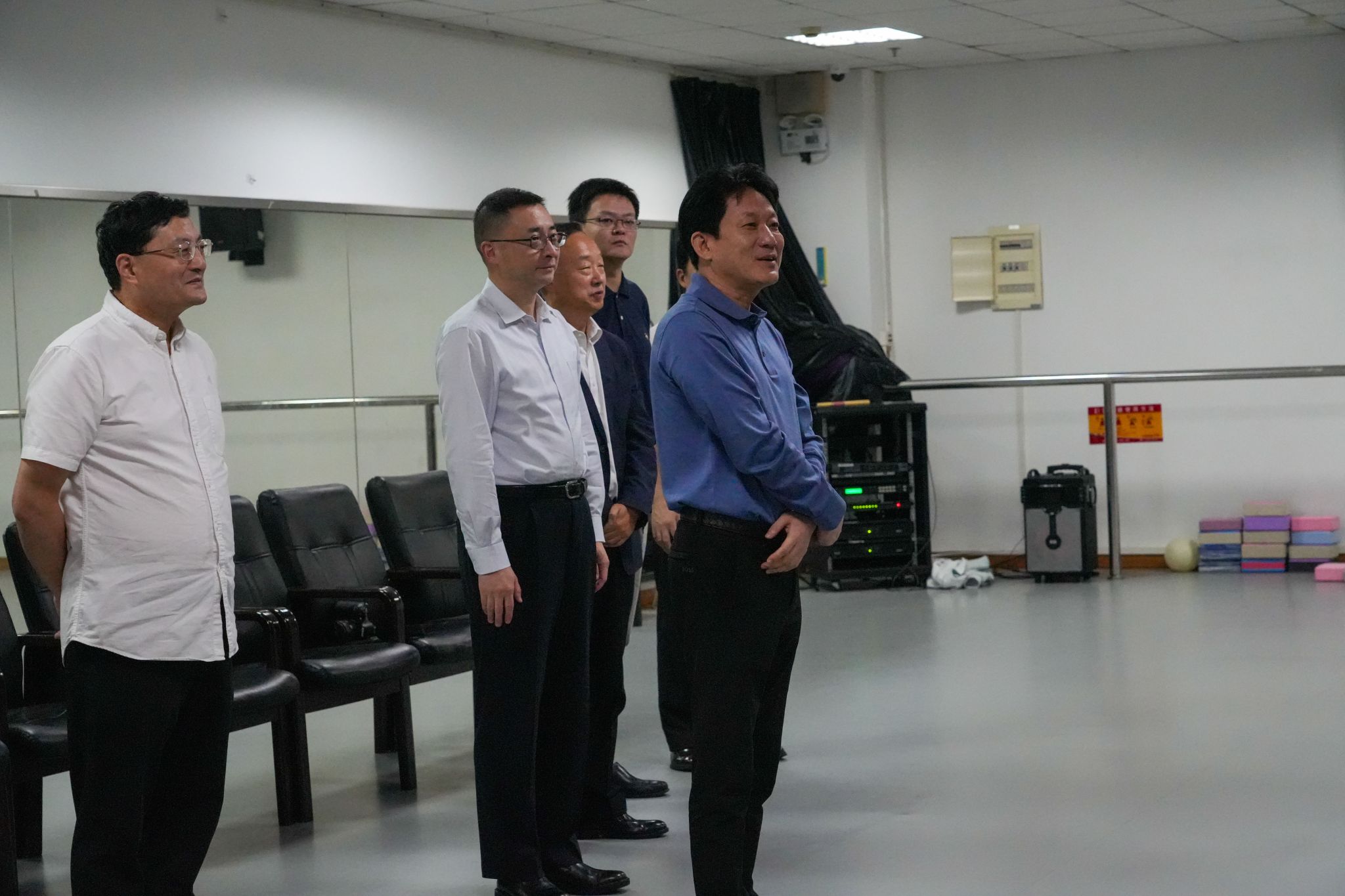 李崟介绍了一年来的筹备情况,并陪同领导们到训练场开展实地调研,开幕式驻停表演、花样跳绳、民族舞蹈、民族健身操的教练团队逐一介绍了参赛项目的创编思路和训练进展。随后,四支队伍分别进行了展示。