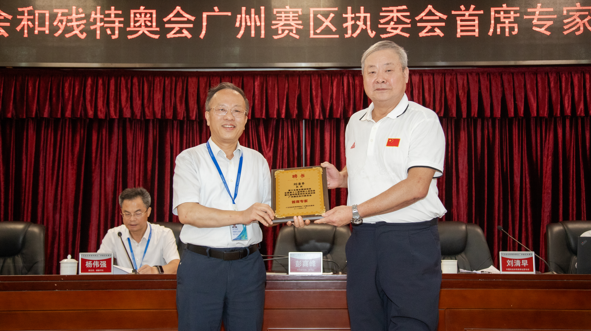 广州赛区执委会举行正式的聘任仪式,广州市人大常委会副主任、广州赛区执委会常务副主任兼秘书长彭高峰向刘清早教授颁发聘书。这是我校师生团队连续为五届全运会提供专业技术指导服务。