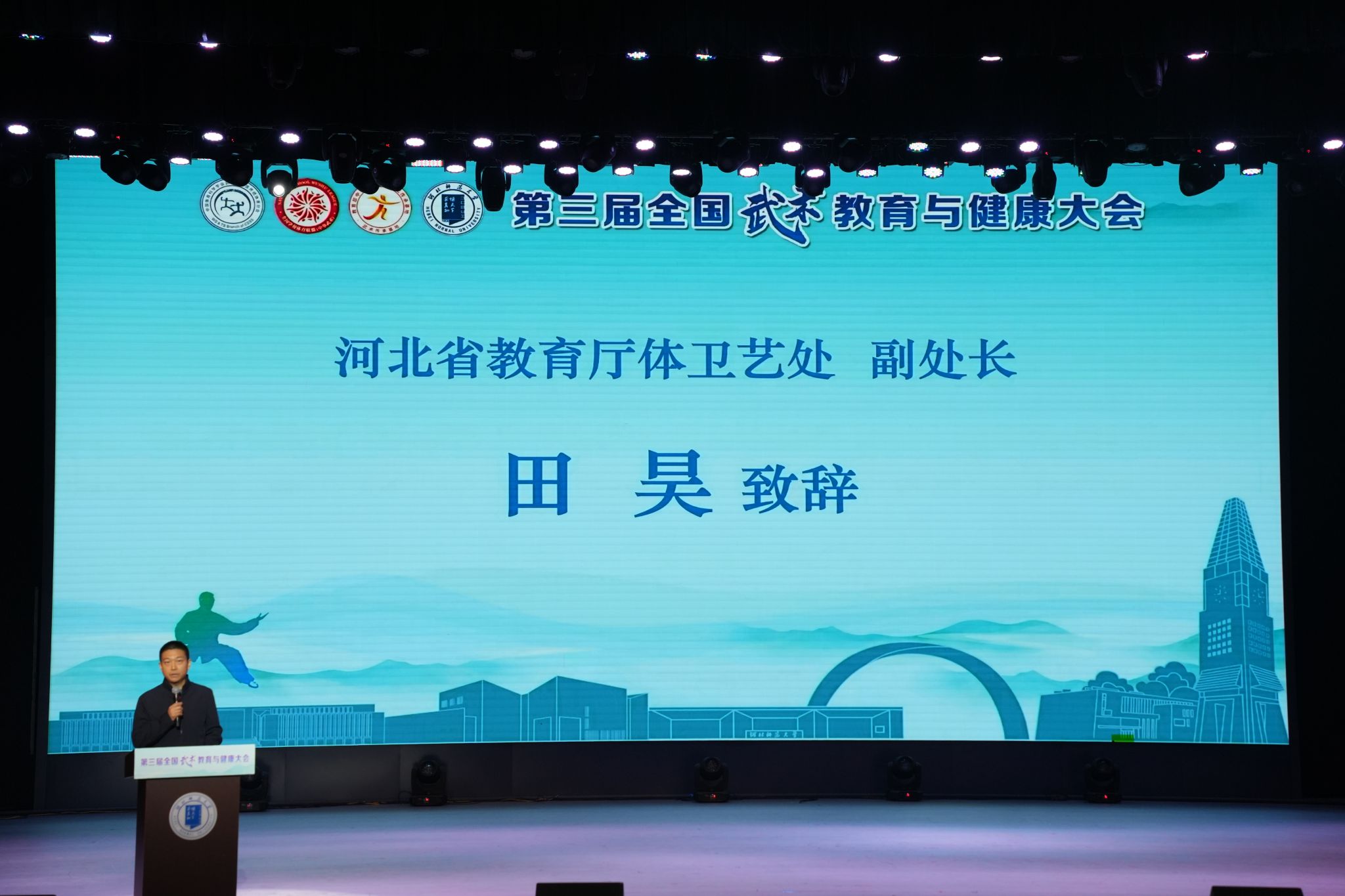 田昊在致辞中强调,河北省深入贯彻习近平总书记关于教育与文化的重要论述,制定并完善相关政策,促进武术教育的创新发展。他指出,河北是中华武术的重要发源地之一,诞生了无数武术名家,也孕育了众多流派,为中华武术的繁荣发展,做出了不可磨灭的贡献。近年来,河北始终将武术教育视为传承民族文化、弘扬民族精神的重要抓手,不断推动武术教育进校园、进课堂,通过创新教学模式、丰富教学内容、完善评价体系等一系列举措,努力提升武术教育的普及率和教学质量。同时,积极探索武术与健康、武术与科技的融合路径,旨在让武术这一传统文化瑰宝在新时代,焕发出更加璀璨的光芒。