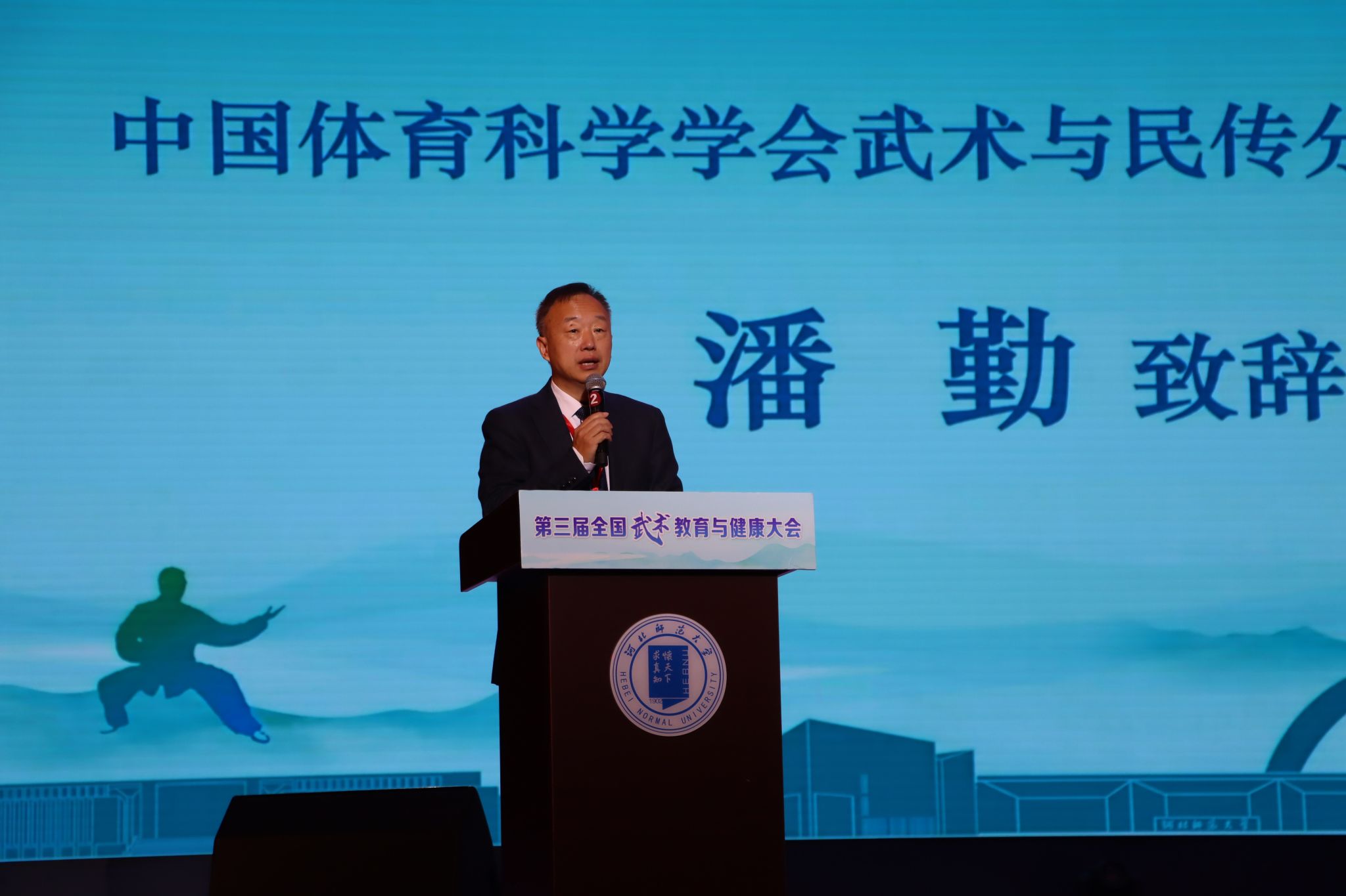 潘勤呼吁武术应凝聚各界力量与共识,深化武术教育改革,通过多元研究视角深入探索武术与教育、武术与健康之间的内在联系和相互促进机制,为武术教育的现代化、科学化、国际化发展提供新的思路和动力。同时,他还强调,党的二十大以来,以习近平同志为核心的党中央坚持以人民为中心,把人民健康放在优先发展的战略地位。面对新时代的新要求,武术教育与健康领域也需要不断创新与改革,以适应社会发展的时代需求和人民群众的健康追求。他希望通过本次大会的交流与研讨,能够激发更多的创新思维,共同推动武术教育与健康领域的研究向更深层次、更广领域发展,助力“教育强国”“健康中国”建设。