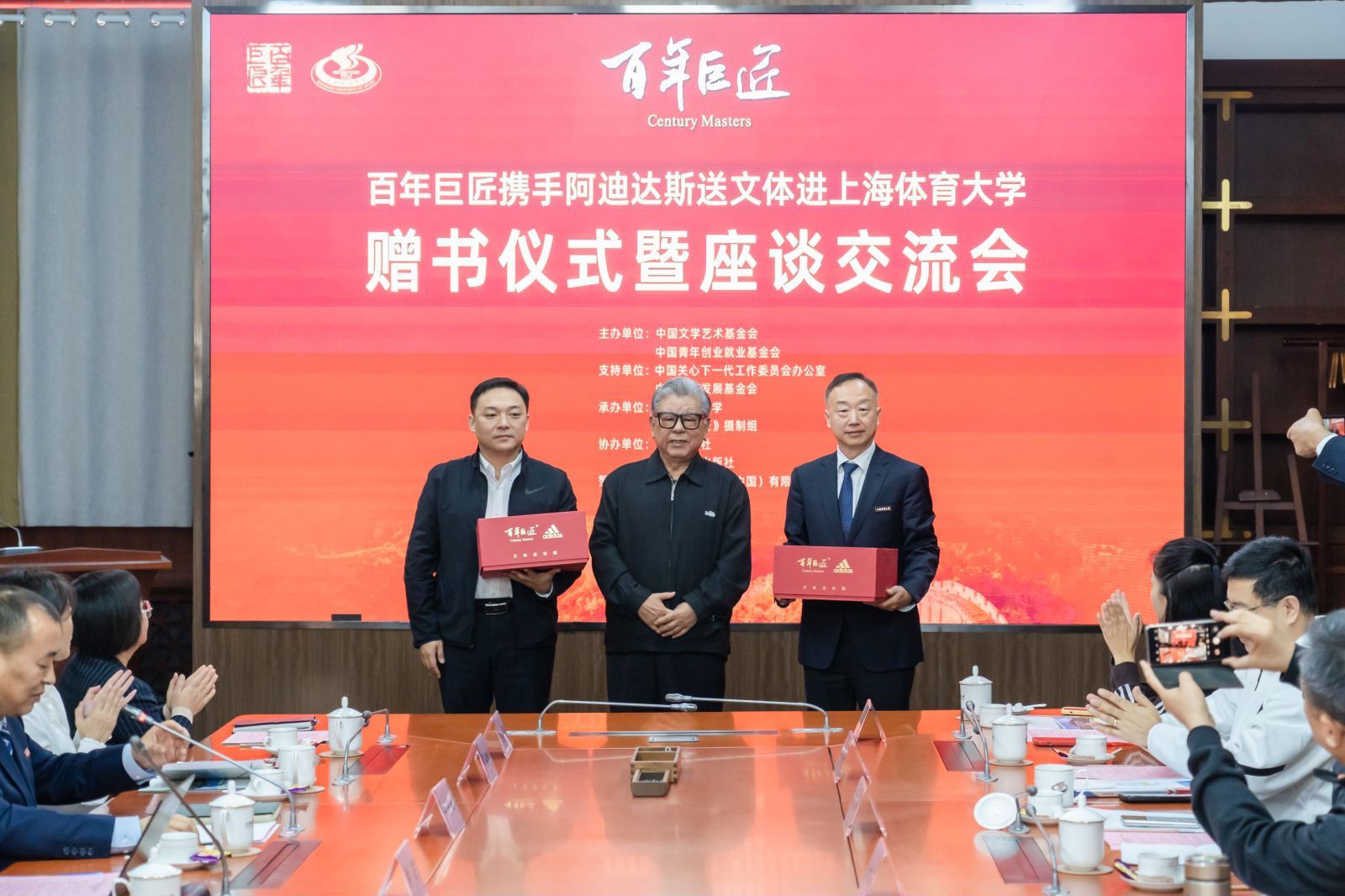 2022年中国文学艺术基金会与阿迪达斯体育(中国)有限公司签署战略合作备忘录,双方以“致敬百年巨匠体育精神、播撒青春力量、描绘魅力中国”为目标,开展了全面的合作,举办了“世纪旋律伟大灵魂——《百年巨匠》音乐篇经典作品音乐会”、《游目骋怀——旅德中国艺术家作品展》、“2023年《百年巨匠》百位大师风采展”等系列活动,《百年巨匠·教育体育篇》获得了金鹰奖最佳纪录片奖提名。截至目前,百年巨匠携手阿迪达斯送文体进校园已经走进全国约500个县市区,惠及2500余所大中小学校约150万名在校生。