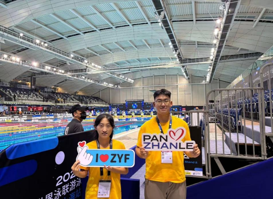 由校团委副书记王宁老师和体育教育学院团委书记王其跃老师带队,我校共组织112名青年志愿者投身各岗位服务。志愿服务从10月16日伊始,不同岗位分时段上岗,志愿者们每日早出晚归,虽辛苦却充满热情。他们各司其职,运动员服务志愿者细心关怀运动员;体育展示志愿者带来沉浸式观赛体验;电视转播志愿者确保转播顺利;计时计分和技术官员助理志愿者保障比赛公平公正;观众服务和入场检票志愿者维护赛场秩序。在这充满挑战与荣耀的2024世界泳联游泳世界杯中,上体学子们以青春的热忱和无私的奉献,在各个岗位上绽放出璀璨的光芒,成为新时代志愿服务的一抹亮色。