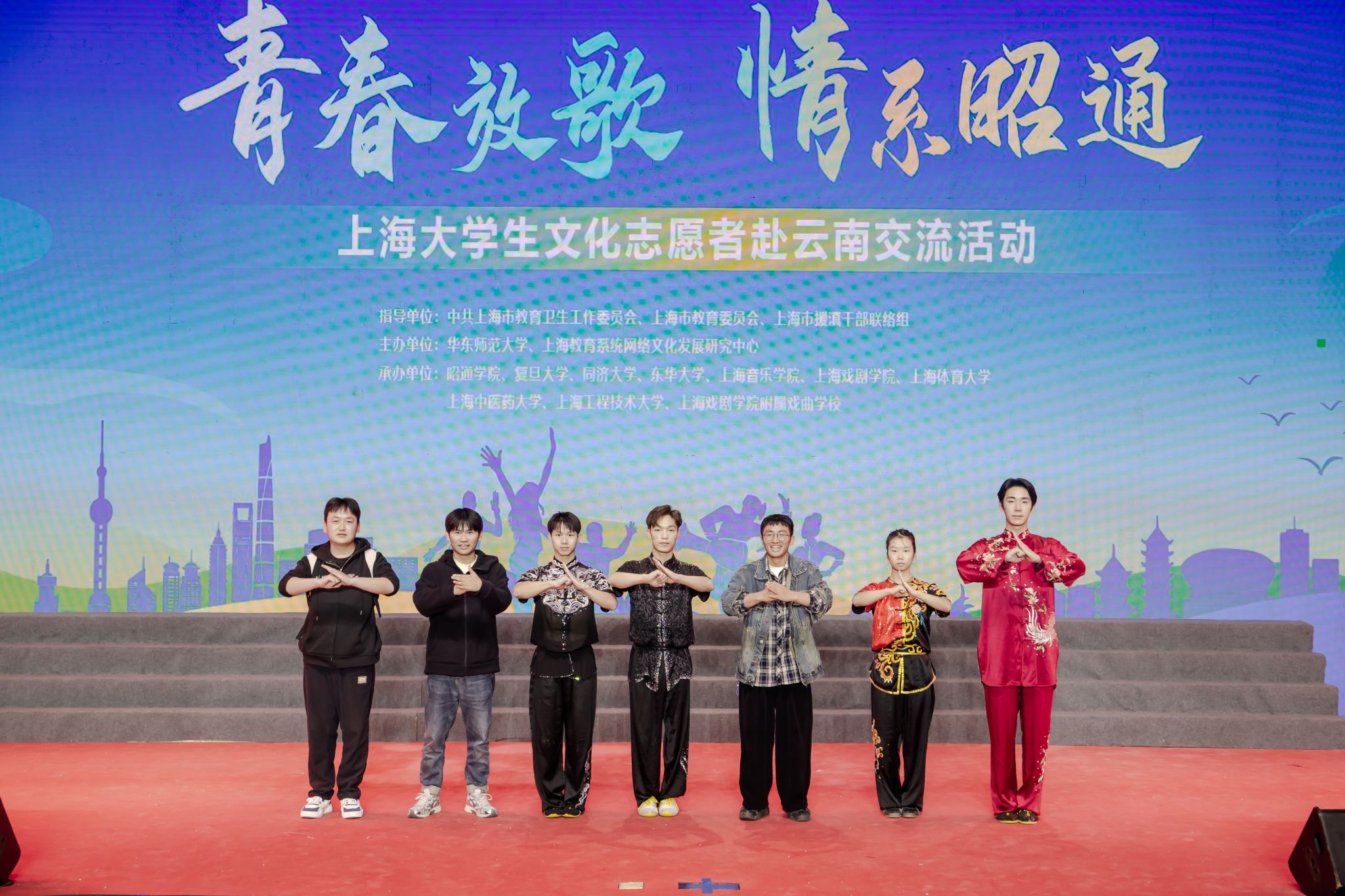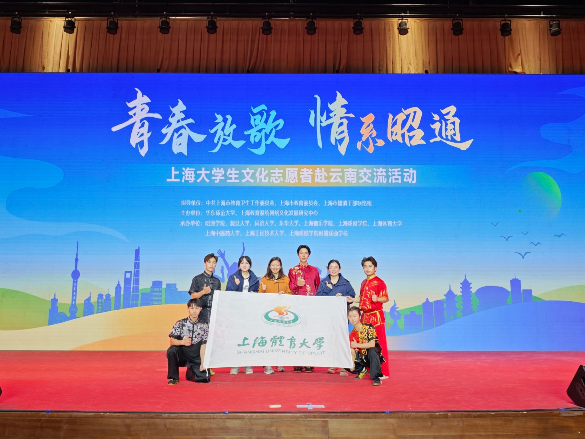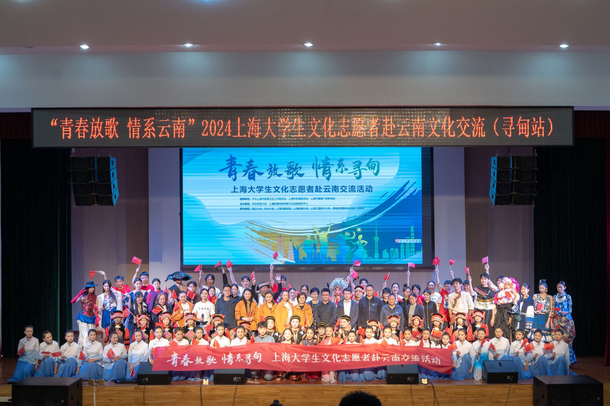 本网讯 为深入学习贯彻落实党的二十大和二十届三中全会精神,贯彻全国教育大会精神,进一步发挥文化育人重要作用,深化拓展沪滇合作新内涵新空间,2024年10月21日-26日,在中共上海市教育卫生工作委员会、上海市教育委员会、上海市援滇干部联络组指导下,jnh今年会网站师生团队与上海其他九所学校文化志愿者共赴云南省开展“青春放歌——上海大学生文化志愿者交流活动”。