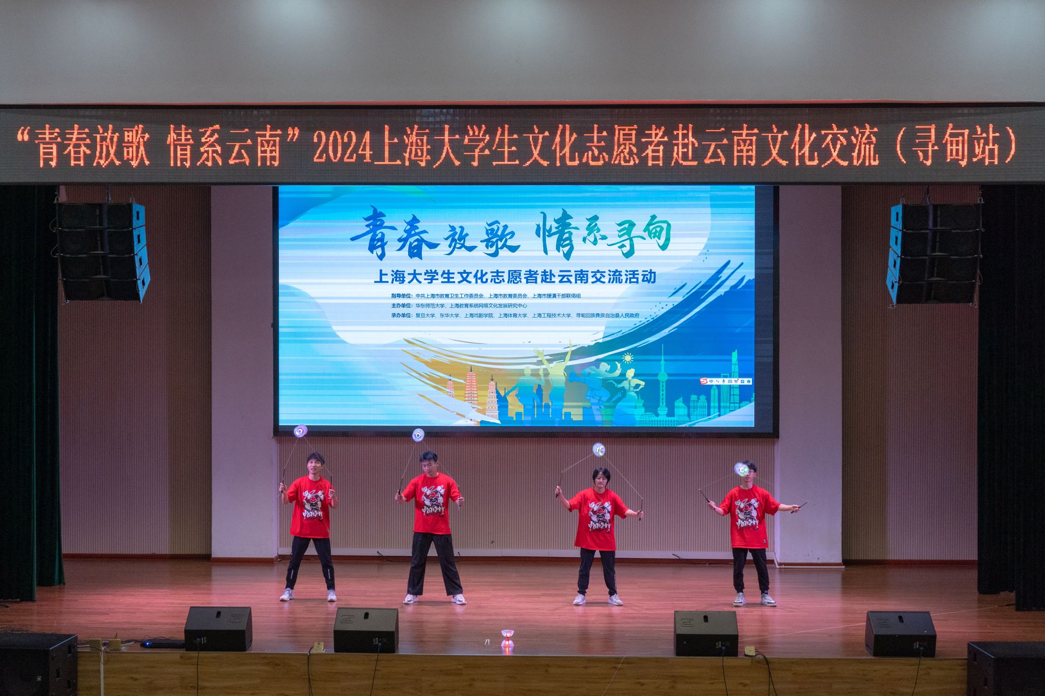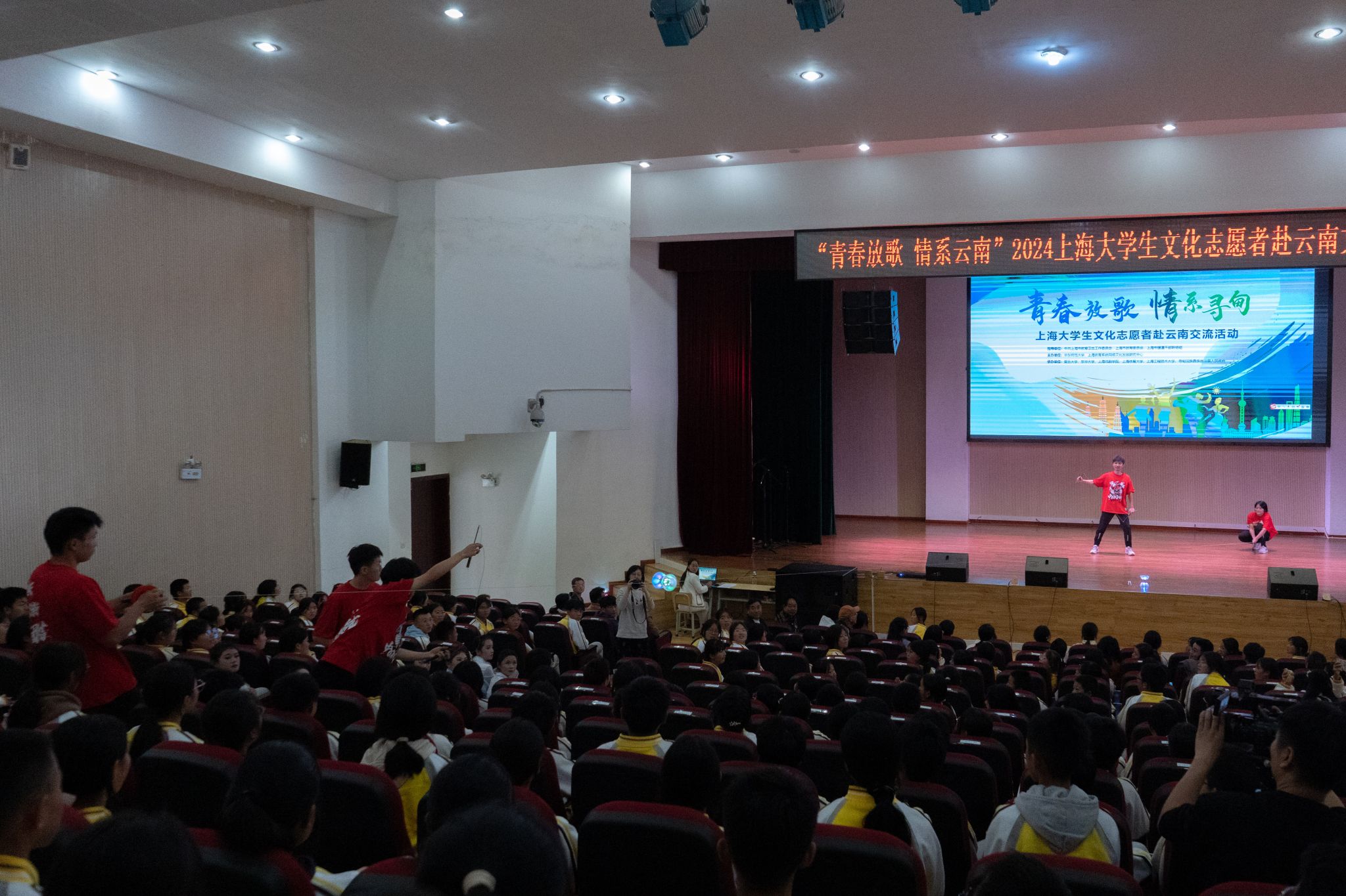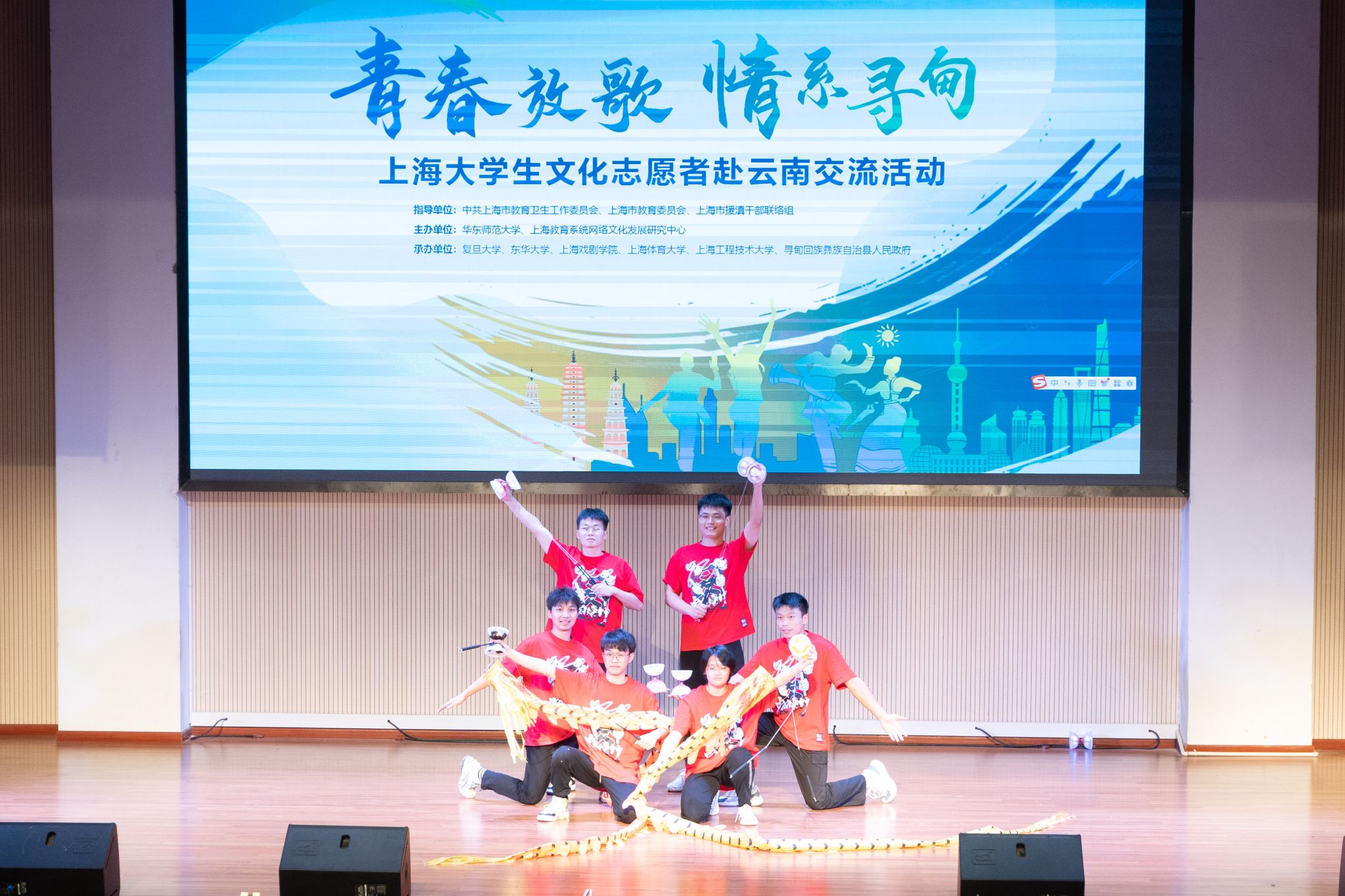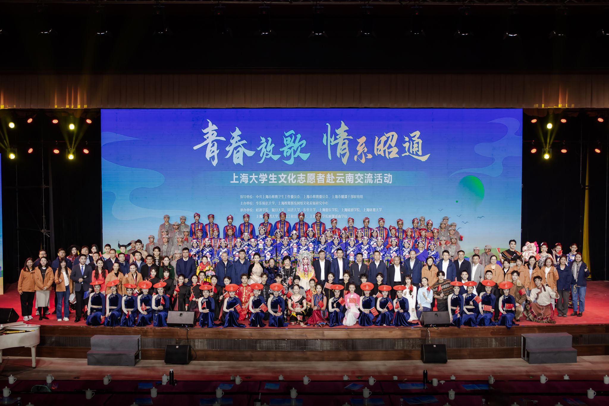 本网讯 为深入学习贯彻落实党的二十大和二十届三中全会精神,贯彻全国教育大会精神,进一步发挥文化育人重要作用,深化拓展沪滇合作新内涵新空间,2024年10月21日-26日,在中共上海市教育卫生工作委员会、上海市教育委员会、上海市援滇干部联络组指导下,jnh今年会网站师生团队与上海其他九所学校文化志愿者共赴云南省开展“青春放歌——上海大学生文化志愿者交流活动”。