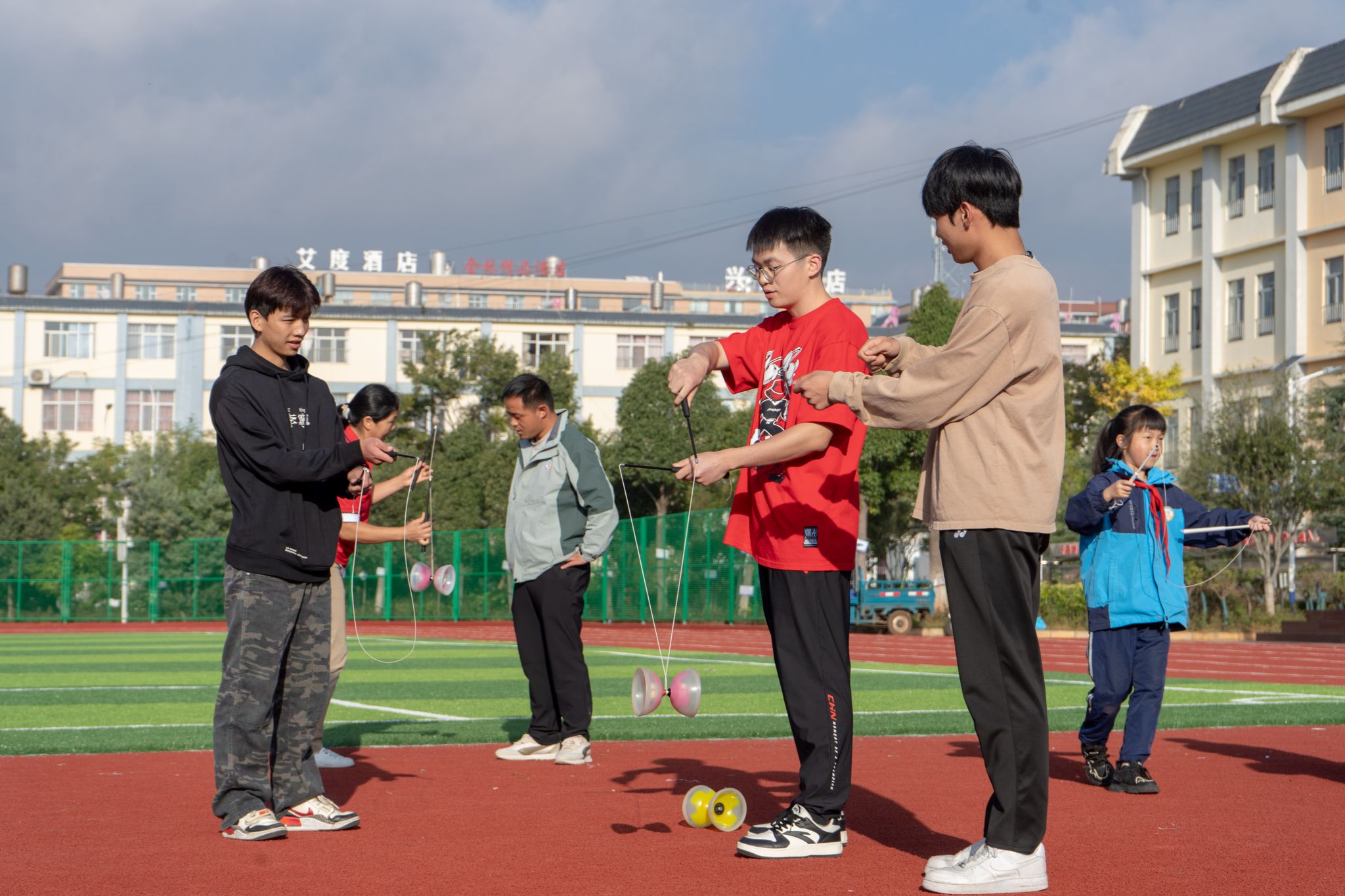体育教育学院选派了由我校民间体育专项班和空竹社团六位同学组成的jnh今年会网站空竹表演队,由杨小凤副教授担任节目指导老师,带队在寻甸二中完成了难度高、技巧性强的炫技空竹《龙腾盛世》作品,并将龙腾虎跃、崇尚国风、创新求真、朝气蓬勃的精神面貌和高超技艺展示给云南寻甸的师生们,给校园学子带来国风新潮流,视觉新体验。
