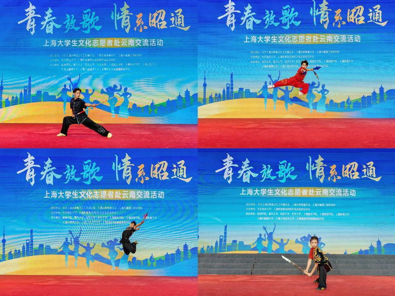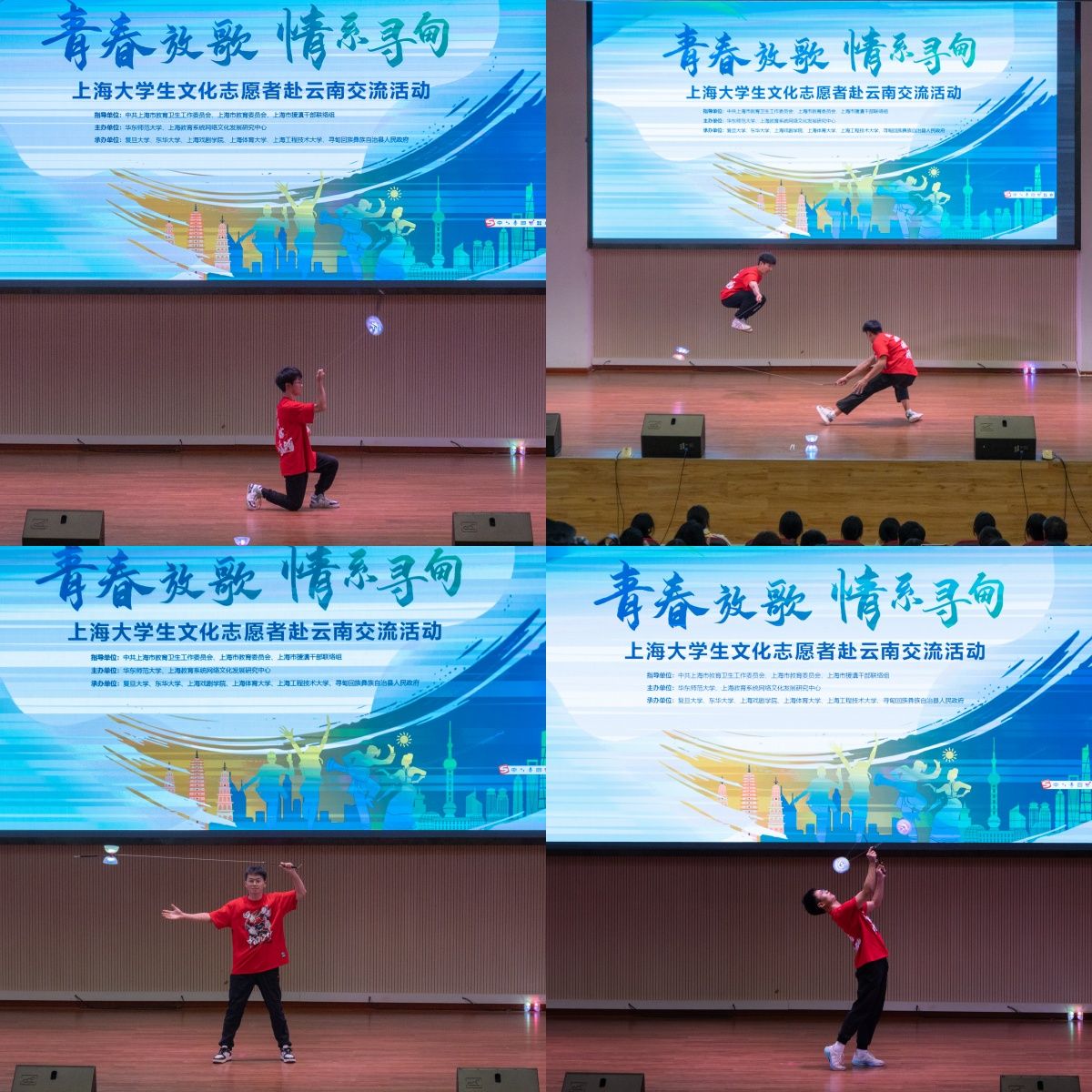 此次交流巡演分为昭通站和寻甸站,jnh今年会网站分别带来了《群英荟萃》武术表演和《龙腾盛世》炫技空竹表演,来自同济大学、华东师范大学、东华大学、上海音乐学院、上海戏剧学院、上海中医药大学、上海工程技术大学等学校的学生,还带来了舞蹈、时装秀、音乐话剧、川剧变脸、大合唱等文艺节目,昭通学院和寻甸二中选送了舞蹈类、合唱类节目进行表演。