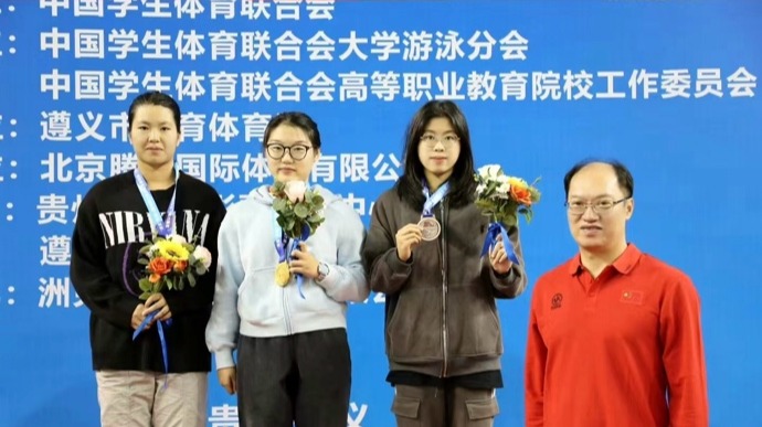 在本次比赛个人项目中,我校学生刘昱均首次参赛,在女子甲组100米、200米蝶泳中斩获两枚金牌,并打破了女子甲组100米蝶泳的赛会纪录。