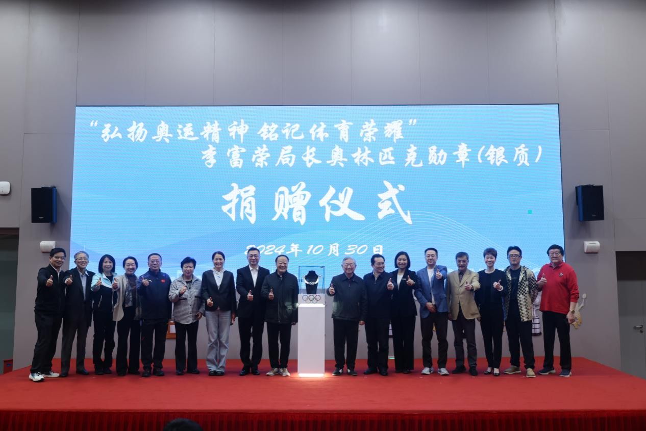 李崟在欢迎词中谈道,这枚奥林匹克勋章(银质)象征着荣誉与辉煌,承载着拼搏进取的精神和团结合作的理念,李富荣同志能够将其捐赠给乒博馆,体现了对体育精神的传承与致敬,为体育文化注入了新的活力。“未来,希望各方能够继续携手奋进,依托中国乒乓球学院和乒博馆等良好平台,为弘扬乒乓球文化,传承国球精神竭尽全力,推动乒乓球文化的交流和合作,让中国乒乓球事业在全球舞台上绽放更加耀眼的光芒。”