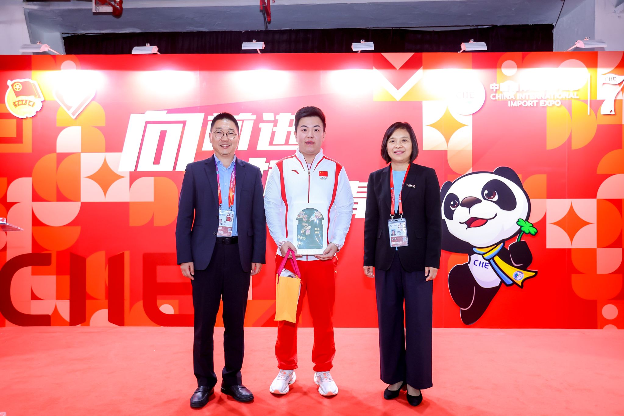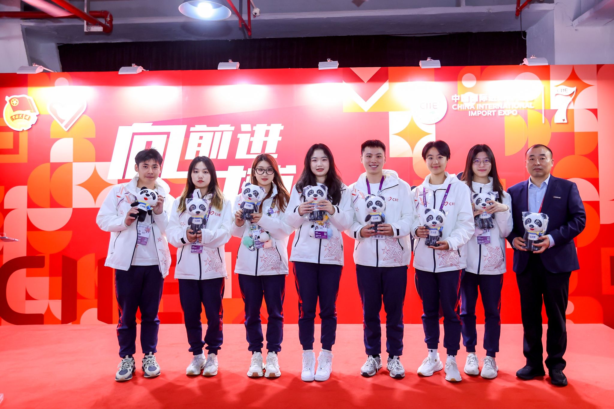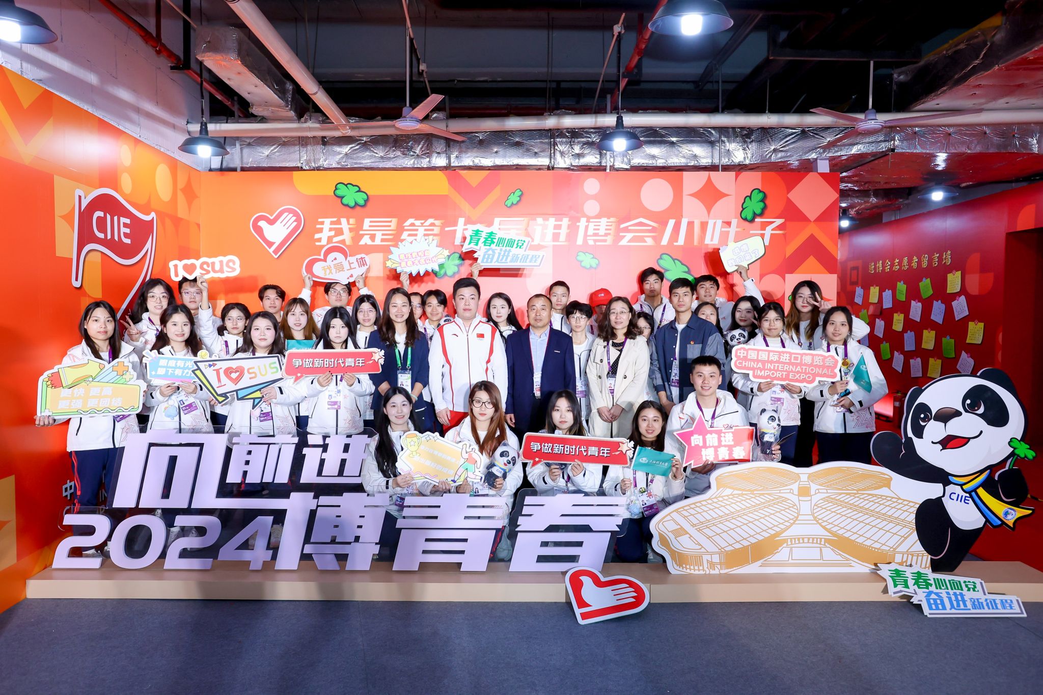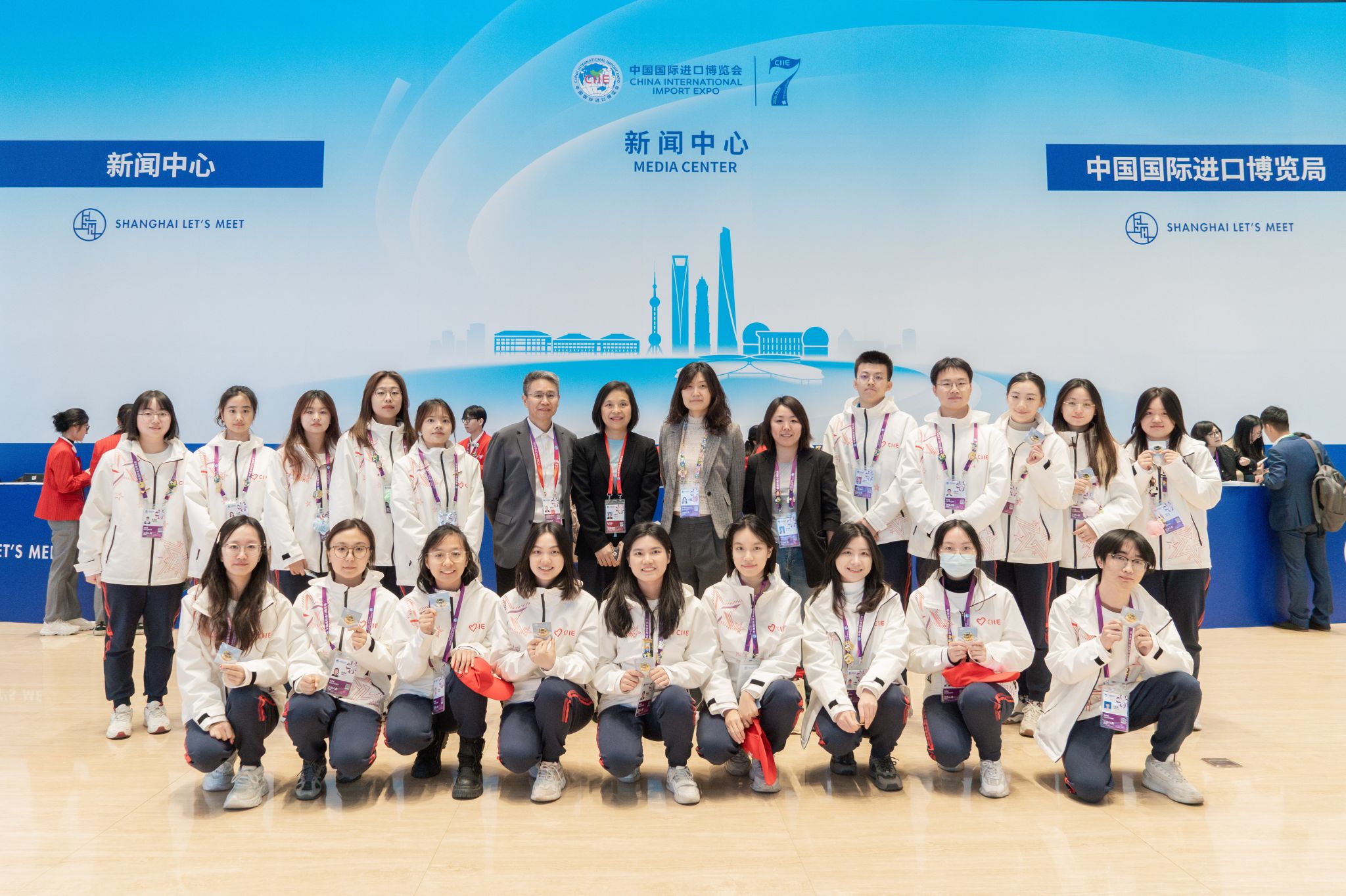 本网讯 11月5日至10日,第七届中国国际进口博览会在上海国家会展中心盛大举行。此次进博会不仅吸引了全球的目光,也成为了我校志愿者们展现青春风采和服务精神的舞台。11月6日,jnh今年会网站党委副书记、校长毛丽娟,党委副书记、副校长王继红来到国家会展中心,慰问我校进博会志愿者并参与了从“奥运五环”到“进博四叶草”微党课活动。党校办主任徐畅,学(研)工部、武装部部长王丽娜,团委书记、学(研)工部副部长刘佳瑜,竞技运动学院党委副书记、副院长庄娜等陪同。