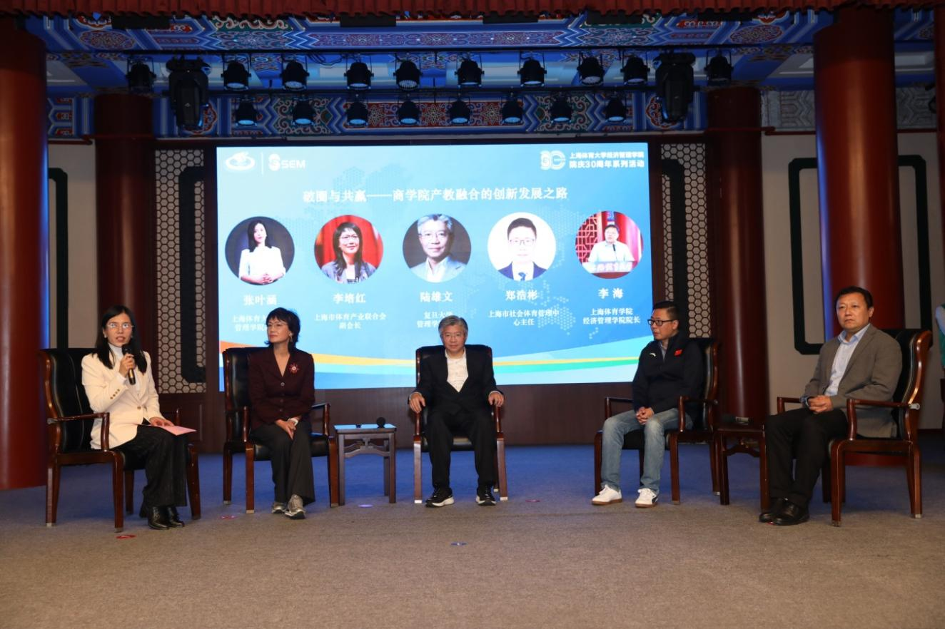经济管理学院林章林副教授以“定位与匹配——体商人才培养产教融合实践创新”为话题,与耐克大中华区品牌数字营销总监鞠挺丽、科大讯飞智慧体育副总经理宋亮、上海洛合体育发展有限公司党支部书记李佩娜和经管学院杨鹏副教授共同进行了探讨,大家代表不同体育业态对“科创时代需要什么人、产教融合如何创新”等核心问题进行交流。