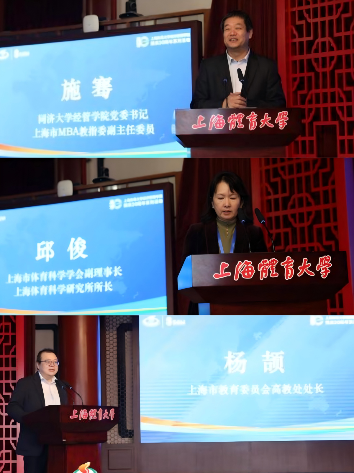 施骞教授在致辞中表示,上海市MBA教指委高度重视案例工作,认可案例在产教融合和教学创新中的价值。作为国内首家建设案例中心的体育高等学府,希望未来加强体育案例思政价值挖掘,加深与体育行业发展协同互动,加大与兄弟院校的合作交流,助力体育商科教育的高质量发展。邱俊所长从国内体育产业发展现状和趋势着眼,对以案例为桥梁,链接高校和产业提出殷切希望。杨劼处长代表上海市教委祝贺案例中心的成立,并从课堂真实使用案例场景效果出发,提出基于案例中心的成立,发挥出体育学科的优势,依托体育强国和上海全球著名体育城市建设,用案例讲好中国体育故事的希望。