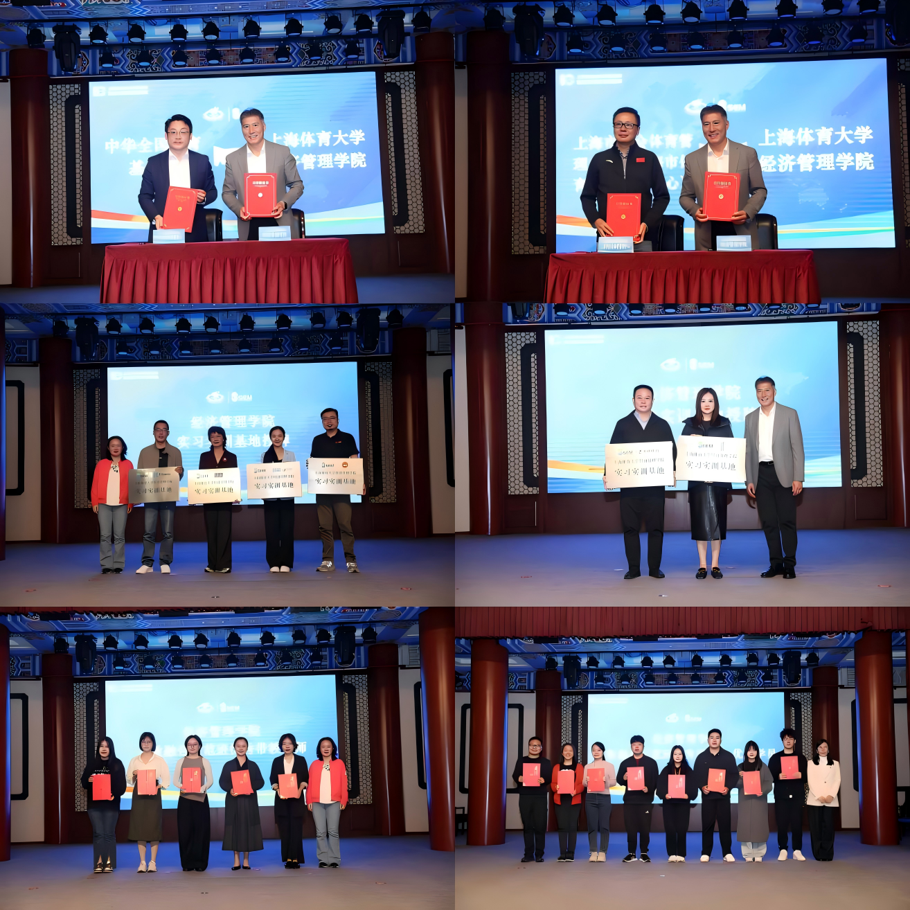 活动签约和授证环节由经济管理学院张峰筠副教授主持。经管学院案例中心分别与中华全国体育基金会、上海市社会体育管理中心进行案例合作签约,并为五星体育传媒有限公司、上海市体育产业联合会、上海市篮球协会、上海市电子竞技运动协会、迪桑特(中国)有限公司、上海奇欢体育活动策划有限公司、拳跆空(上海)体育经纪发展有限公司等7家企业进行“实习实训基地”授牌。同时表彰了本年度产教融合示范班优秀带教老师、班主任和学员。