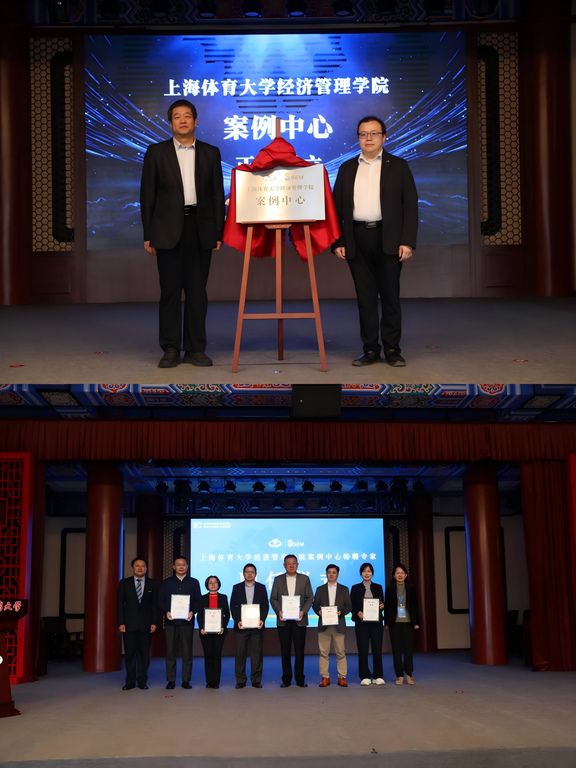 杨颉处长、施骞教授共同上台为jnh今年会网站经济管理学院案例中心揭牌,经济管理学院院长李海为兄弟院校的案例专家授予“上体经管案例中心首批特聘专家证书”。