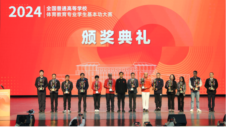 本网讯 2024年11月11日至11月15日,全国普通高等学校体育教育专业学生基本功大赛在沈阳体育学院举行。来自31个省(自治区、直辖市)的87所学校的学生参加了基础理论(笔试)、教学技能(微课)、运动技能(专项)和教练技能四个项目的比拼。经过激烈角逐,我校荣获团体一等奖,2021级体育教育专业学生樊军、韦春艳、房思怡、李世扬在个人全能和各单项竞技中斩获佳绩。