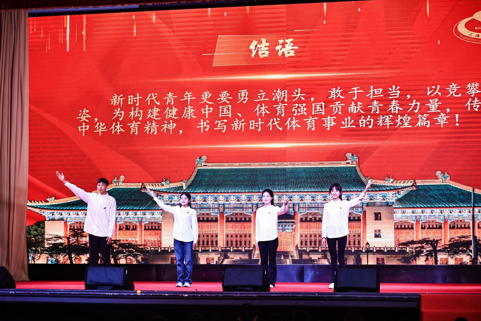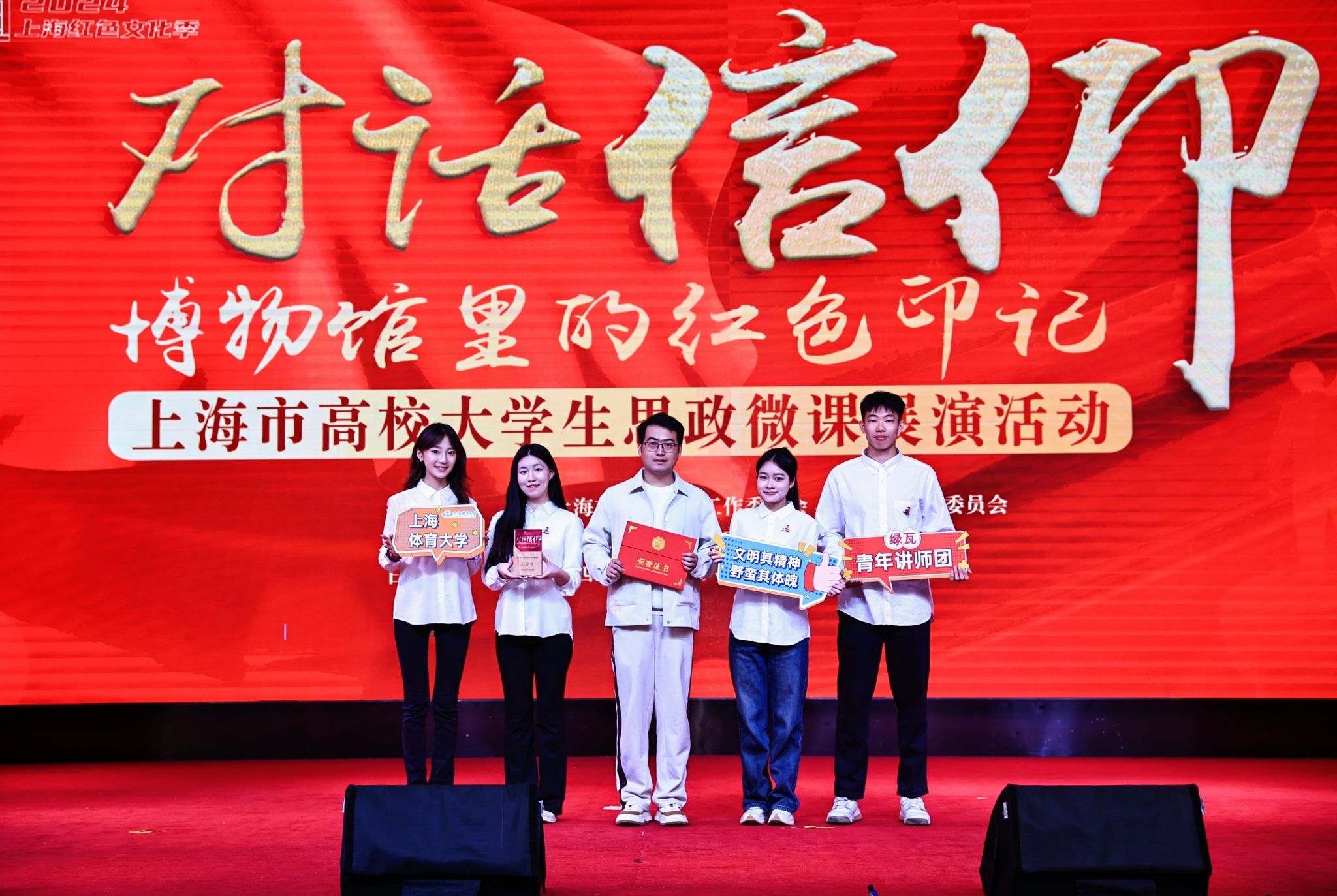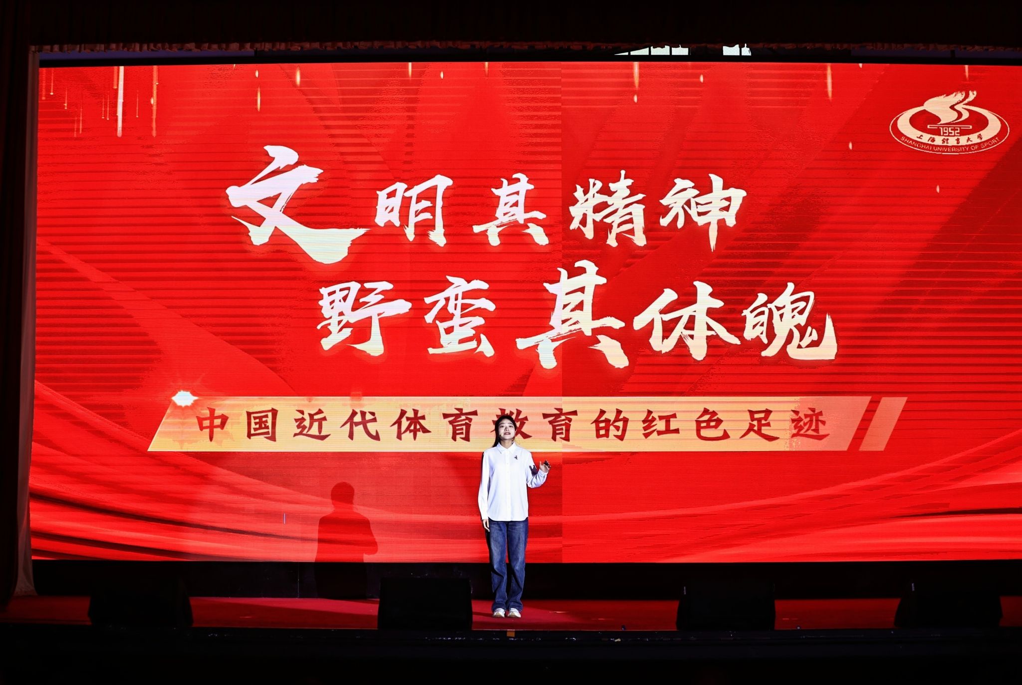 本网讯 11月16日,在上海市教卫工作党委、上海市教委指导下,来自沪上11所高校的优秀大学生讲师团齐聚上海理工大学,同台演绎、对话信仰,以思政微课展演的方式讲述“博物馆里的红色印记”。由我校报送参赛的《文明其精神,野蛮其体魄——中国近代体育教育的红色足迹》参加了此次上海市高校大学生思政微课展演活动,并荣获二等奖,展现了体育人的独特风采和学校深厚的红色文化底蕴。