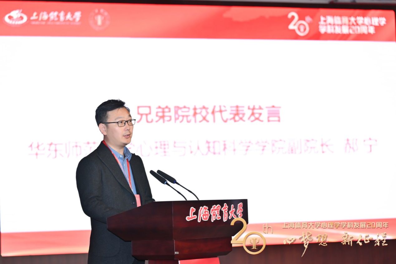 华东师范大学心理与认知科学学院副院长郝宁代表兄弟院校致贺词。郝宁介绍了华东师范大学与jnh今年会网站在心理学领域的长期合作与交流。两校通过学术会议和青年学者沙龙等活动相互支持、分享经验,促进了学术交流及人才培养的发展。他希望,未来双方继续加强合作,共同探索更多潜在的合作机会,推动心理学科的创新、培养创新型人才,并更好地满足社会需求。