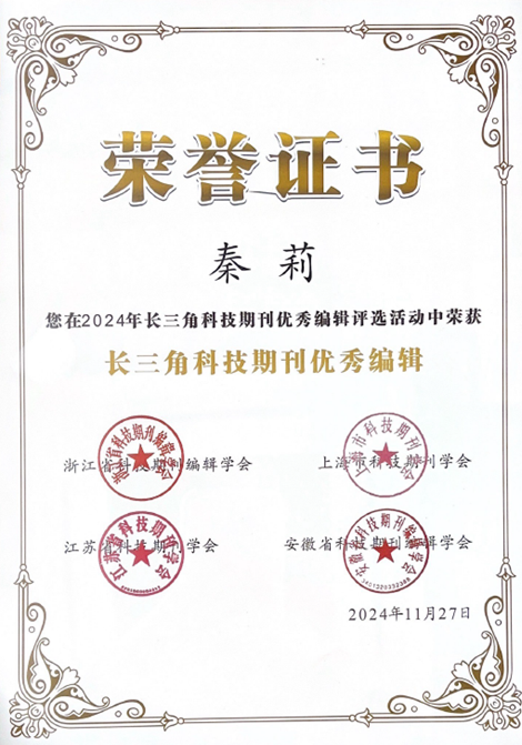 长三角科技期刊发展联盟组织开展2024年长三角科技期刊优秀编辑评选活动,旨在充分发挥先进典型的引领示范作用,加强期刊编辑队伍建设,促进期刊出版队伍整体素质的全面提高。经各期刊社积极推荐,各地学会初评,长三角科技期刊发展联盟最终评定,共评选出杰出主编(主任)18人、优秀编辑30人、优秀青年编辑51人。