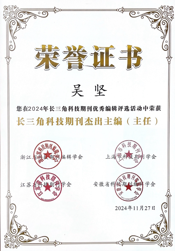 11月27日,由长三角科技期刊联盟及京津渝科技期刊学会共同主办,浙江省科技期刊编辑学会、上海市科技期刊学会联合承办的“第20届长三角科技期刊发展研讨会暨第28届京津沪渝科技期刊主编/社长研讨会”在浙江长兴召开,来自浙江省、上海市、江苏省、安徽省、北京市、天津市、重庆市的200余位编辑代表参会。会议公布了2024年长三角科技期刊优秀编辑评选活动的评定结果,我校期刊中心主任吴坚编审荣获“2024年长三角科技期刊杰出主编(主任)”,《运动与健康科学(英文)》编辑部秦莉老师荣获“2024年长三角科技期刊优秀编辑”。