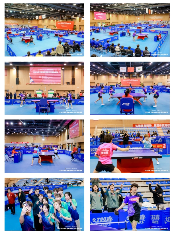 2024年全国体育院校乒乓球锦标赛分为男子团体、女子团体、男子单打、女子单打、男子双打、女子双打、混合双打、注册组男子单打和注册组女子单打九个项目的比赛。经过四天的激烈角逐,本次赛事于11月28日下午顺利完赛,比赛现场气氛热烈非凡,各参赛队伍以“球”会友,互相鼓励、互相学习、共同进步,用积极向上的精神风貌为活动增色添彩,不同院校的同学们通过这次赛事结下了深厚的友谊。