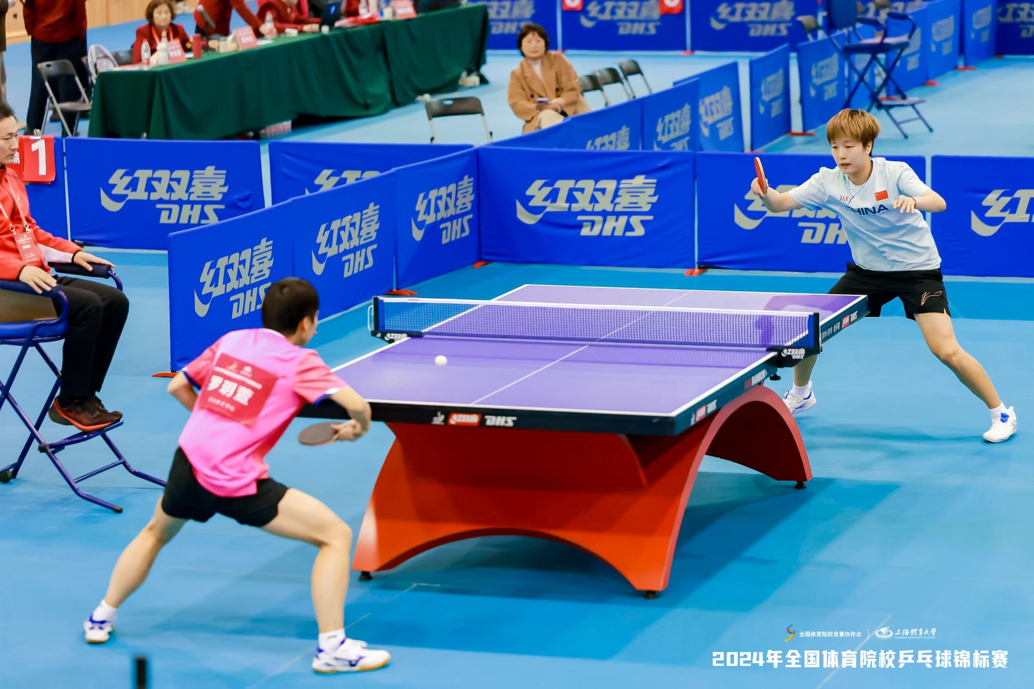 11月25日,赛事开幕式在一系列精彩的暖场表演中拉开序幕。jnh今年会网站党委书记李崟宣布比赛正式开幕,党委副书记、中国乒乓球学院党委书记杨玲致欢迎辞。运动员代表殷添悦和裁判员代表吴依蔓分别进行宣誓。随后,中国乒乓球学院院长施之皓、奥运冠军阎森以及运动员代表殷添悦、唐术航共同完成了象征比赛正式启动的开球仪式。