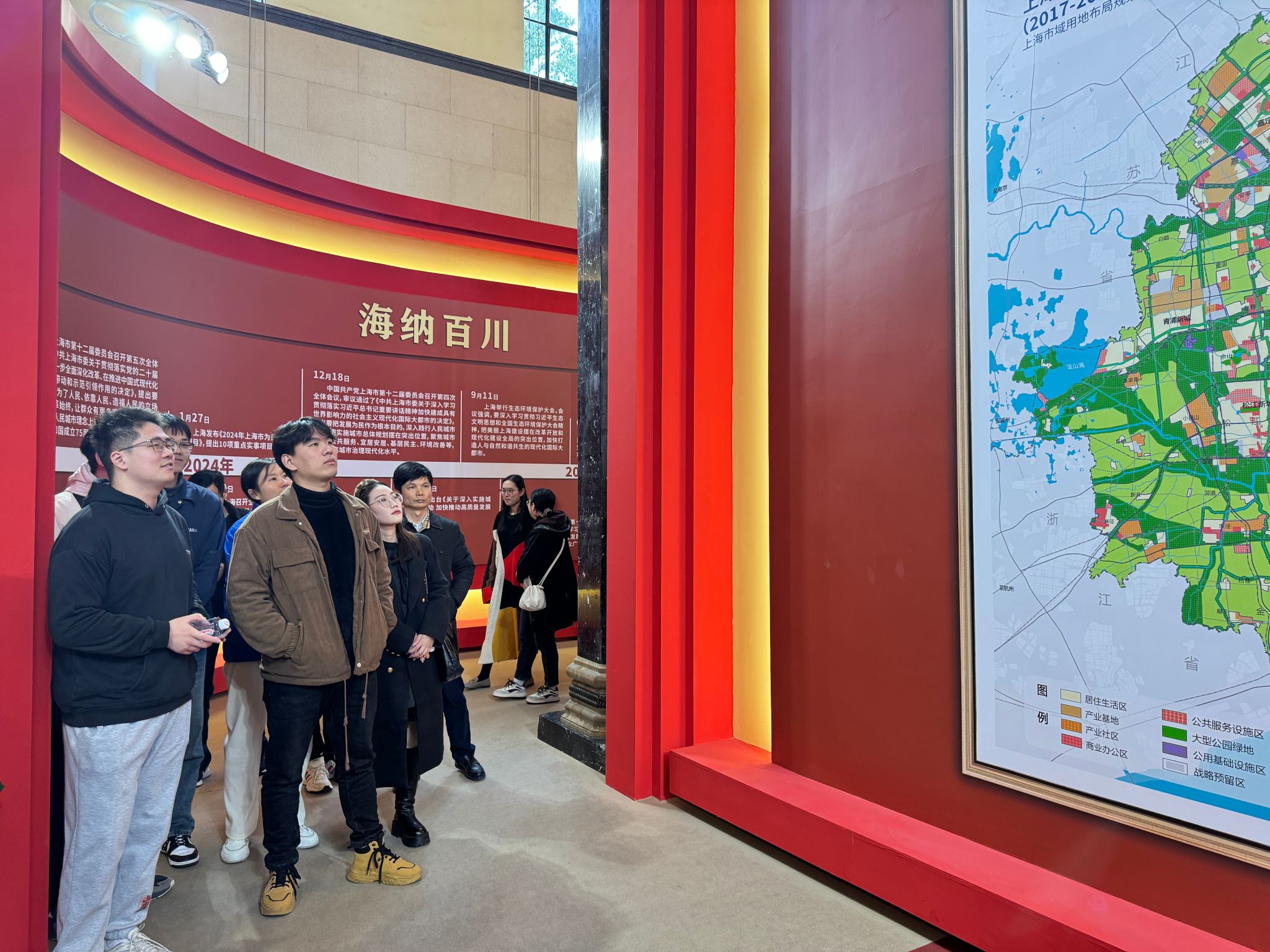 本网讯 为深入贯彻落实习近平新时代中国特色社会主义思想和习近平总书记关于城市工作的重要论述及考察上海重要讲话精神,学习领会习近平总书记给“老杨树宣讲汇”全体同志重要回信精神,更好践行“人民城市”理念,12月4日,马克思主义学院直属党支部组织全体师生前往上海展览中心开展主题党日活动暨“大思政课”实践教学,集体参观“人民的城市——上海打造人民城市最佳实践地”主题展。