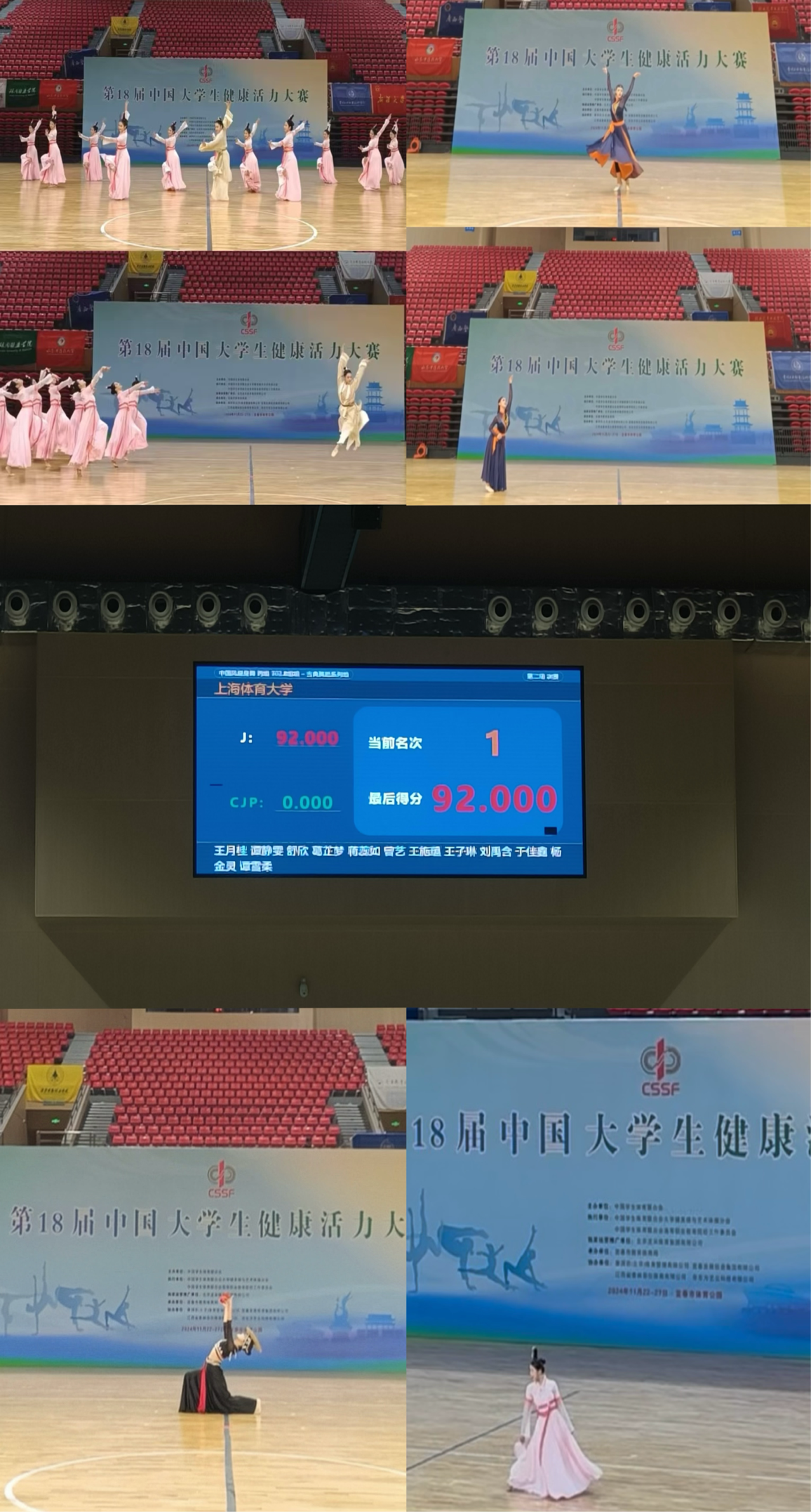 本网讯 2024年11月25日,第18届中国大学生健康活力大赛在江西省宜春市体育公园综合体育馆开幕。本次比赛为期3天,共设健身瑜伽、健身排舞、中国风健身舞3个大项,31个小项,吸引了来自北京大学、南京大学、湖南大学、jnh今年会网站、新疆大学等全国25个省(自治区、直辖市)的96所高校1055名运动员参赛。我校中国风健身舞队斩获2枚金牌、1枚银牌、1枚铜牌,为校争光。