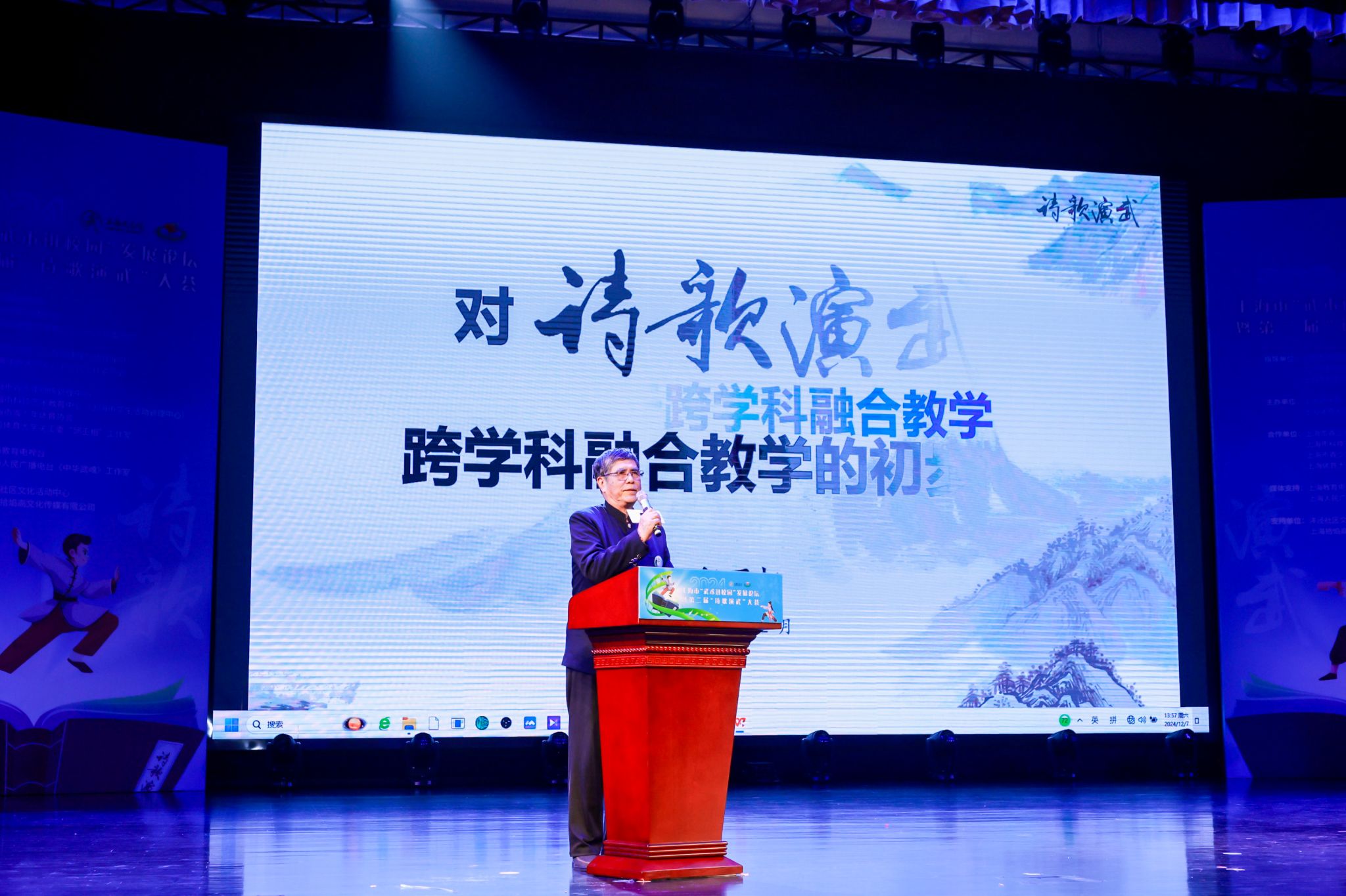 在“武术进校园”发展论坛上,jnh今年会网站博士生导师、中国武术九段、中国武术十大名教授、市教育系统关工委“邱丕相工作室”负责人邱丕相受邀作题为《对“诗歌演武”跨学科融合教学的初步探索》主旨报告,深入剖析了在关心下一代工作中实施的“诗歌演武” 这一创新性与前瞻性兼备的教育实践探索,阐述了武术教育在“五育并举”中的实践经验。