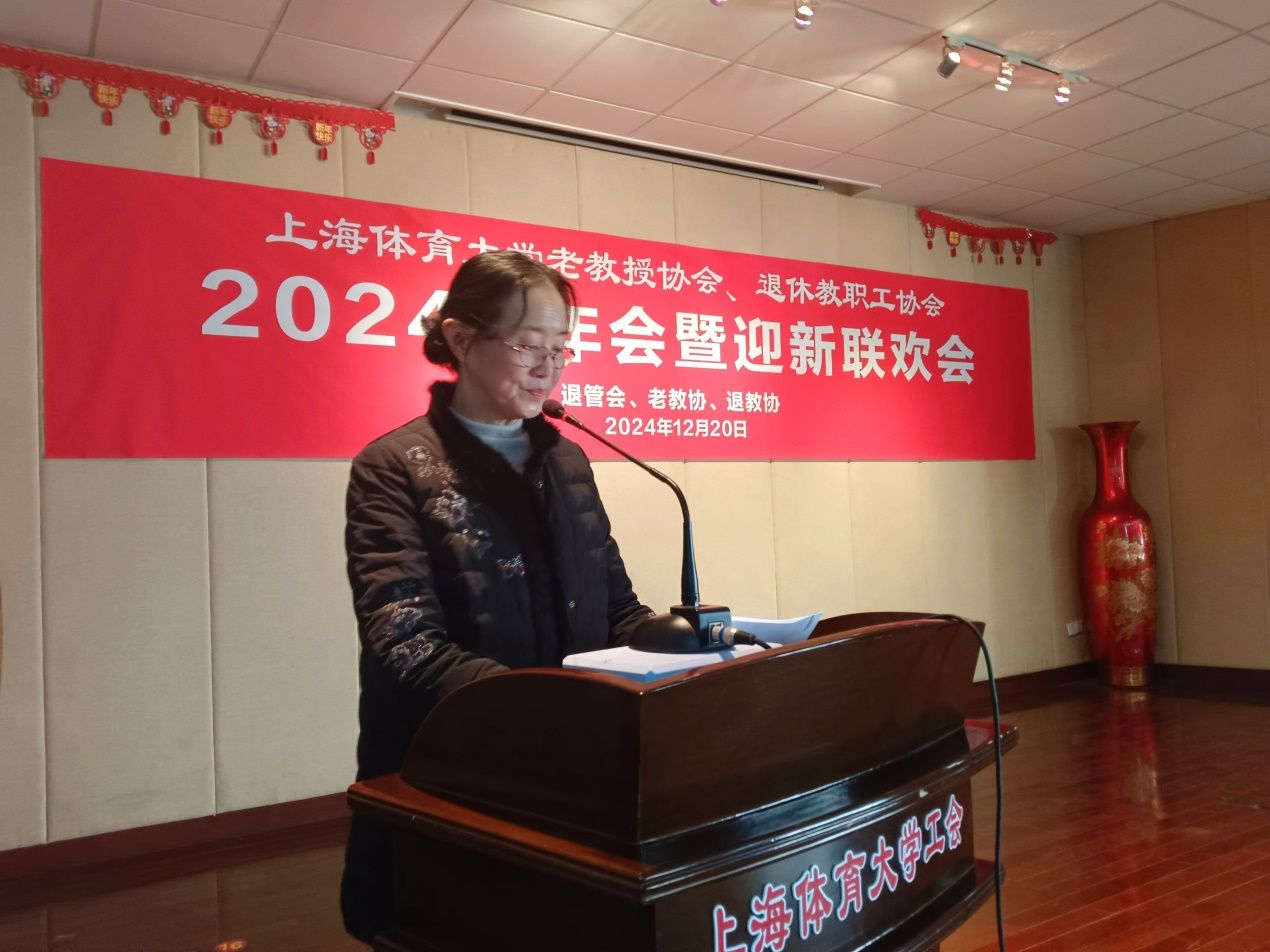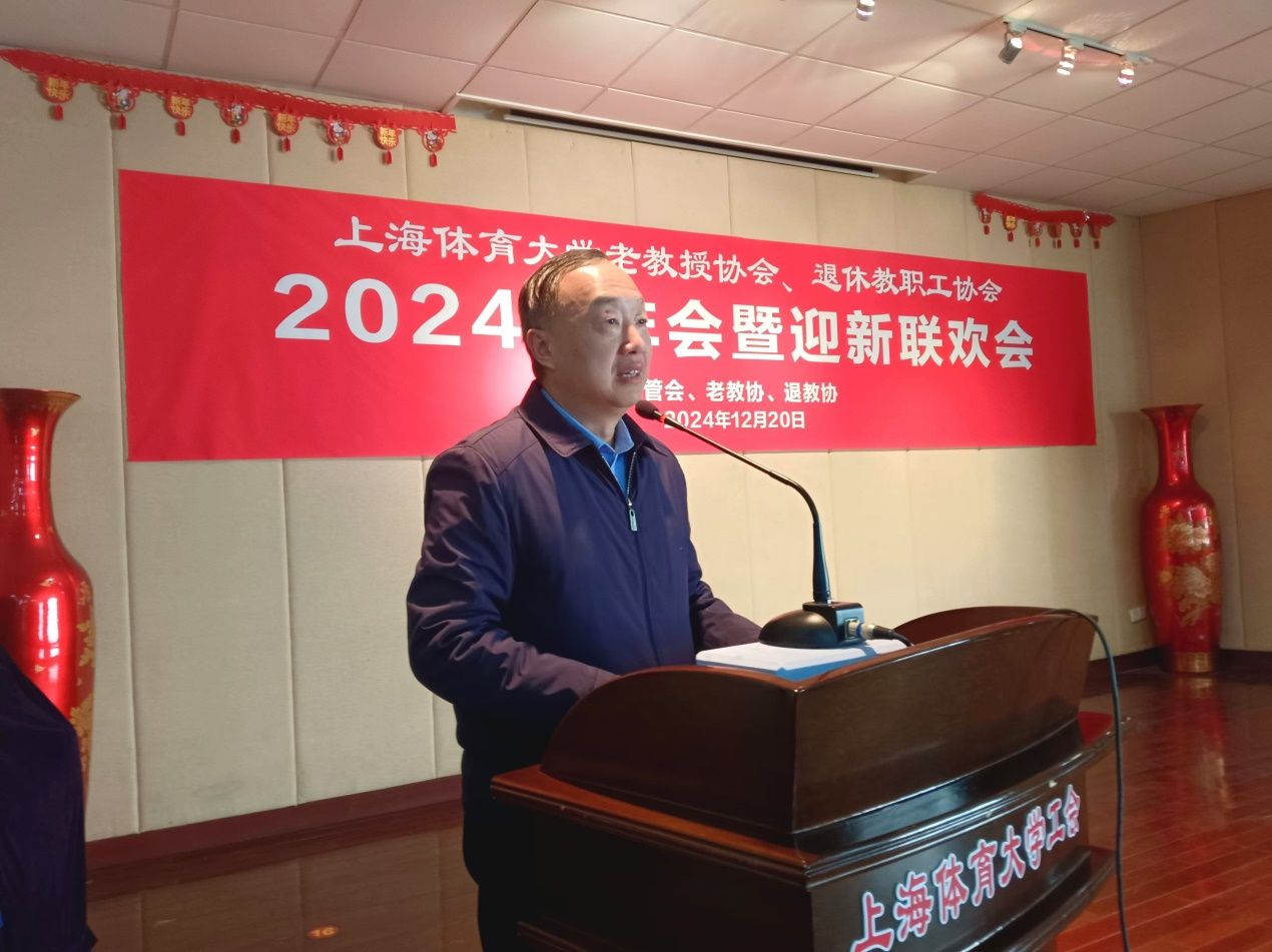 本网讯 12月20日校老教协、退教协在退管会多功能厅召开了2024年年会暨迎新联欢会。校党委副书记潘勤到会讲话,他肯定了协会一年来取得的成绩。他通报学校一年来的主要工作。充分肯定了老同志的作用,在学校教学督导、关心下一代等,依然有老同志的身影。他重点介绍了学校在学科建设、体育竞赛、学生培养、本科教学评估等取得的成绩,还介绍了学校在新的领域,如体育人工智能方面、反兴奋剂实验室等取得的突破。老同志们听了格外振奋,为学校取得的成绩感到由衷的欣慰和自豪!最后,潘勤代表学校向老同志对学校的关心、支持表示衷心的感谢!并祝老同志新年快乐!身体健康、阖家欢乐!