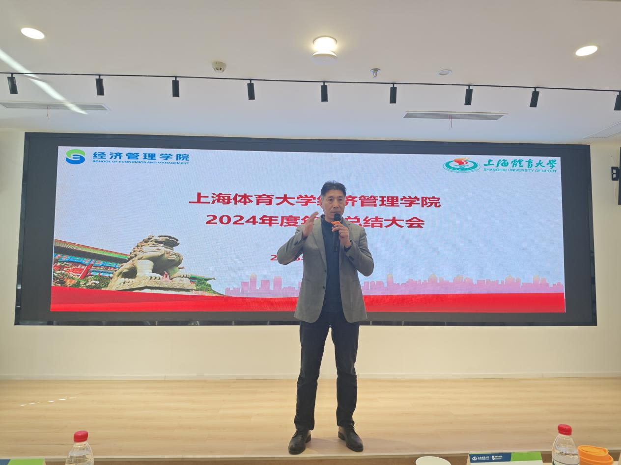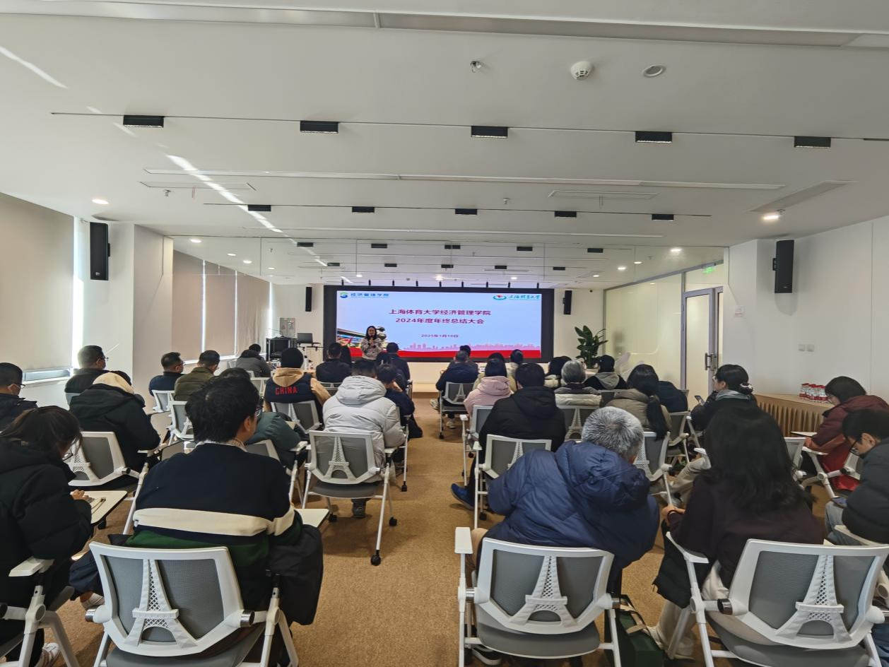 本网讯 为凝聚全院共识,汇聚发展力量,2025年1月10日,经济管理学院在上海体育国家大学科技园海尚园区运动营养与健康创新中心举行2024年度总结大会。经济管理学院领导班子和全体教职工参加大会。大会由经济管理学院党委副书记、副院长王珊珊主持。