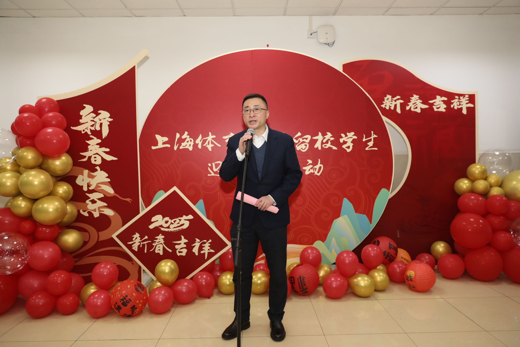 校党委书记李崟在致辞中回顾了2024年学校在学科建设、科学研究、人才培养、社会服务等方面取得的成绩,特别点赞了学生们的志愿服务和竞攀精神,同时也对教职员工们的辛勤付出表示了感谢,并祝愿全体师生新春愉快,携手共创上体美好明天。