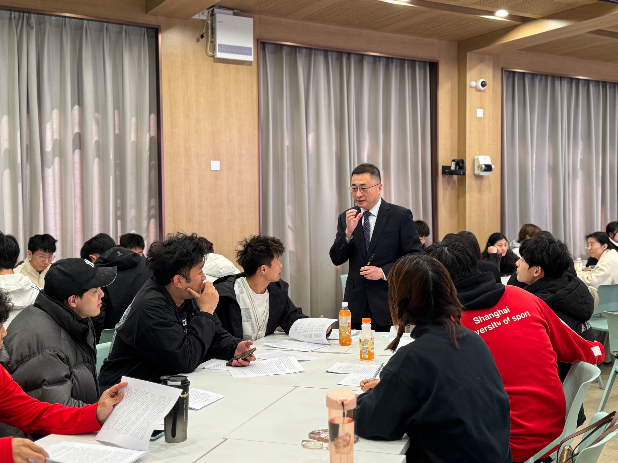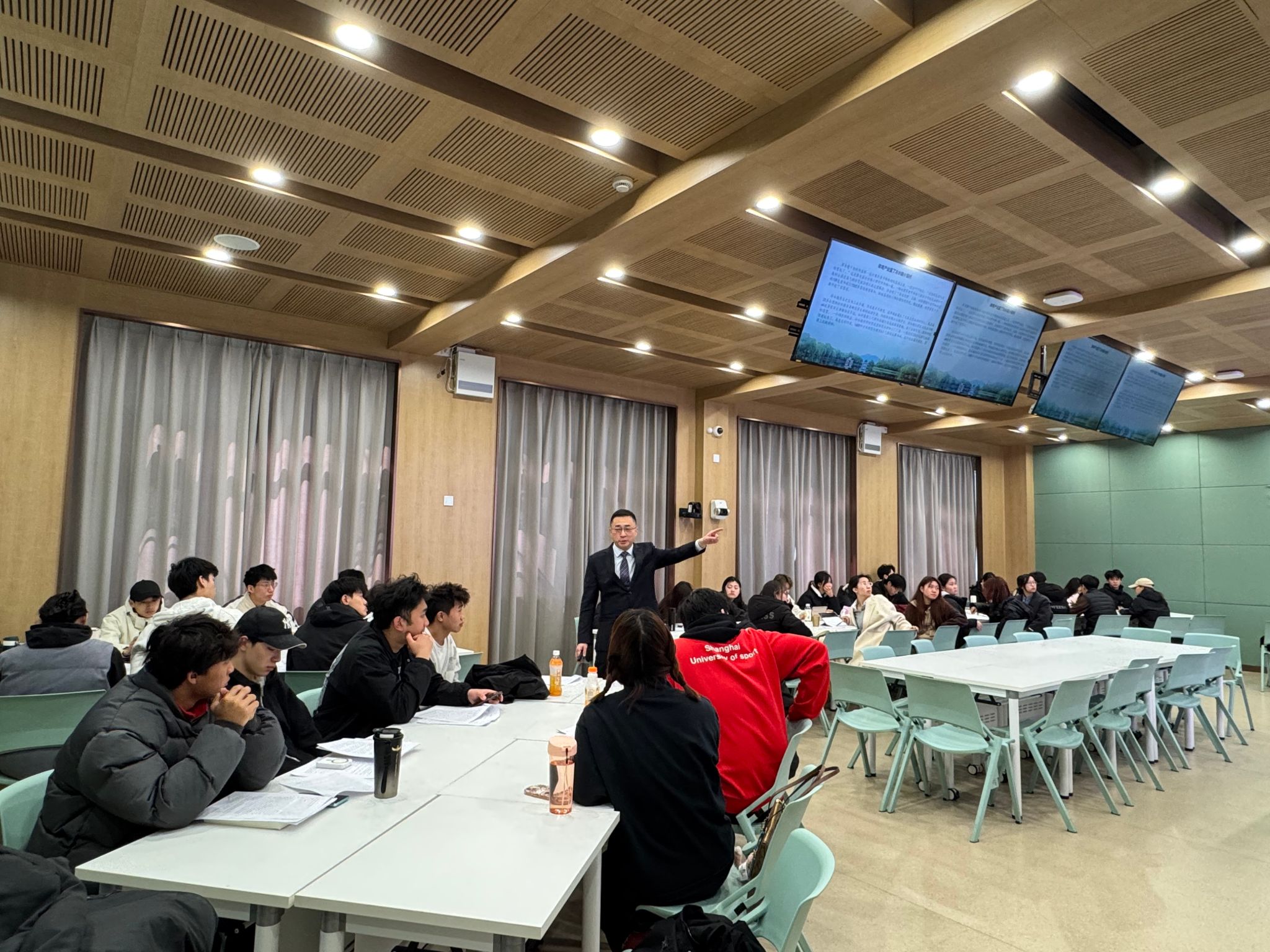 当天上午,由李崟领衔的“习近平新时代中国特色社会主义思想概论”课主讲团队围绕“党的全面领导”和“以人民为中心”教学内容,在老教学楼为武术学院2023级民族传统体育专业本科生开展了一堂生动的案例教学课。课程授课教师徐共强在会上介绍了案例教学的前期准备和课堂组织实施情况,课程观摩教师交流了观摩体会。与会教师围绕思政课案例教学的基本要求和组织实施、案例选择和文本撰写、学情分析和教学难点等相关问题进行了深入研讨交流。