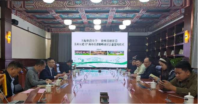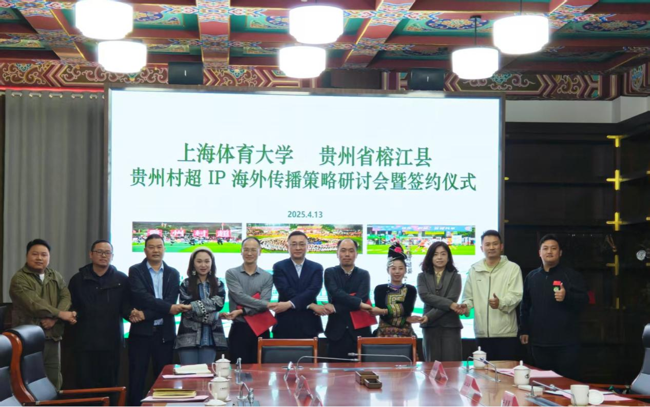 本网讯 为贯彻习近平总书记视察贵州时对“村超”发展所作的重要指示精神,助力“村超”国际化传播,2025年4月13日,村超IP海外传播策略研讨会在我校绿瓦大楼第四会议室顺利召开。会上双方签署了合作备忘录,为这一现象级乡村体育赛事 IP 的海外破圈按下了“加速键”。