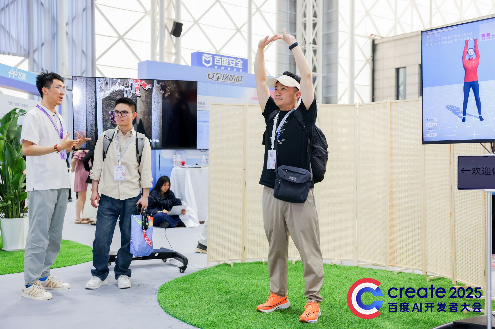 本次大会还设置了AI互动展区,共设5大创意“游乐场”——奇点实验室、AI原生地、未来引力场、生态跃迁和AI无限空间,每一位开发者都能在沉浸式参与中体验百度与全球合作伙伴的前沿产品技术。在互动展区,“非遗武术大模型”吸引了广大与会代表驻足交流、亲身体验,通过人机互动,走进非遗武术世界、感受非遗武术魅力。