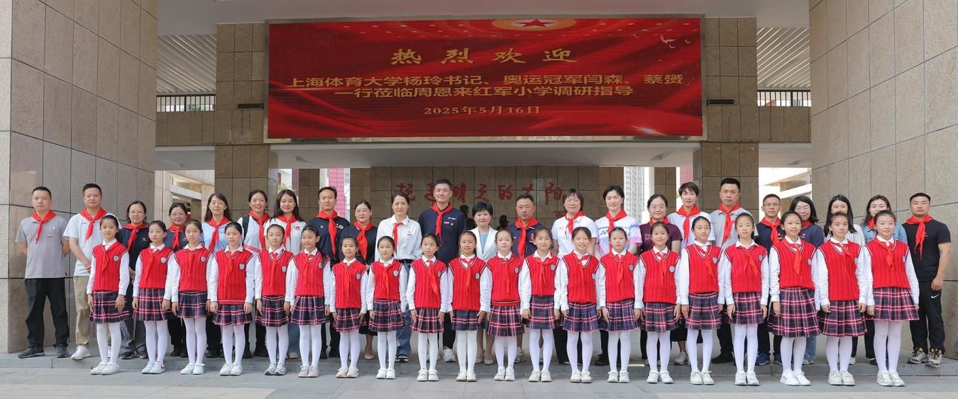 团队成员一同走进全国首所“五星级红军小学”、淮安市先进基层党组织——周恩来红军小学,实地考察该校“五育并举”创新实践成果,学习其“长征园”“恩来精神展馆”等红色育人阵地建设经验,并联合淮安区人民政府、博里镇党委及周恩来红军小学共同开展了“对话冠军·筑梦未来——奥运冠军进校园”党建联建活动。