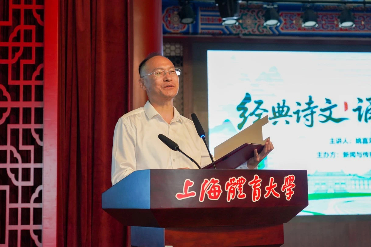 讲座中,姚喜双教授以范仲淹《岳阳楼记》、苏轼《水调歌头·明月几时有》、杜甫《春夜喜雨》三篇经典作品为例,凭借深厚的文学素养、丰富的诵读经验和充沛的教学热情,围绕古典诗文的诵读技巧与艺术表达,与现场学生进行了深入交流。讲解了如何把握文本重心、准确传达意义并融入情感,使诵读更加生动自然、感染力更强。在姚教授的带领下,现场的同学们逐句拆解文本,在字里行间搭建起了一座声音的立体迷宫。