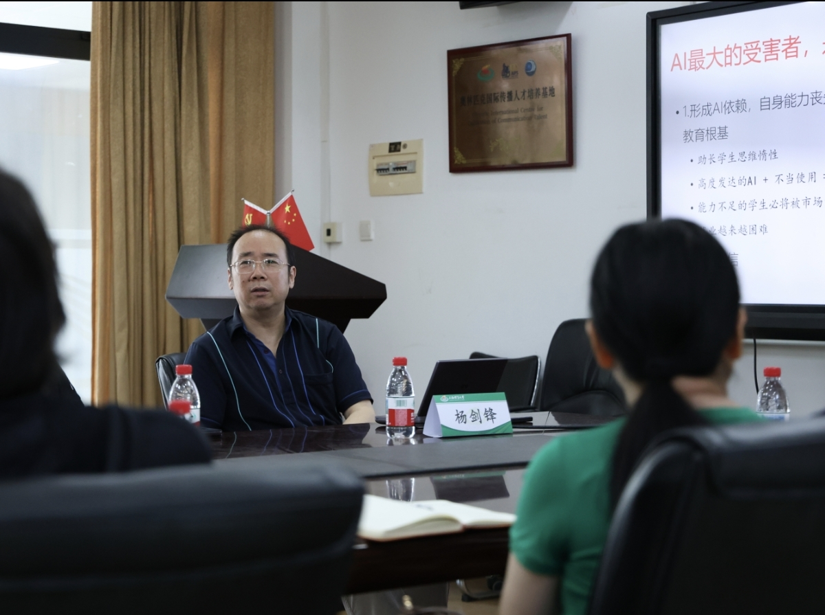 本网讯 2025年5月21日下午,jnh今年会网站新闻与传播学院举办“AI对专业教学的挑战与机遇”专题教研活动。新闻与传播学院杨剑锋副教授作为主旨分享嘉宾,与学院教师围绕AI技术与新闻传播教育的深度融合展开研讨,为智能时代传媒人才培养提供创新思路。