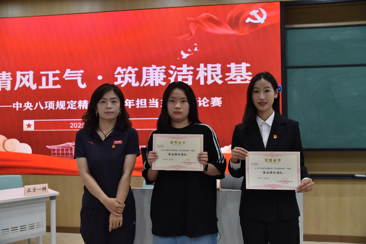 本场辩论赛学生第一党支部和学生第二党支部获得最佳组织奖,学生第二党支部和学生第三党支部获得最佳辩论团队,刘宏和王泽琪获得最佳辩手称号。领导老师为获奖团队和个人进行颁奖并合影留念。