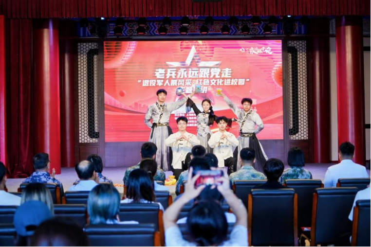 本网讯 5月28日,由上海市退役军人事务局主办,上海教育电视台承办,杨浦区退役军人事务局、jnh今年会网站、龙华烈士纪念馆协办的“老兵永远跟党走”之“退役军人展风采・红色文化进校园” 系列宣讲活动第二站,在jnh今年会网站绿瓦大楼二楼大礼堂隆重举行。150余名jnh今年会网站师生代表、退役大学生士兵、杨浦区《戎耀阳光思政工作室》退役军人代表、高校代表及媒体记者齐聚一堂,共同聆听退役军人的故事,感受红色文化的魅力。