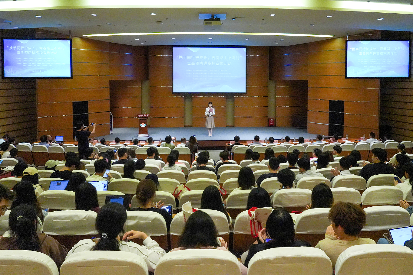本网讯 2025年6月11日下午,杨浦区“携手同行护成长,青春路上不毒行”毒品预防进高校首站宣传活动在我校图文信息楼报告厅举行。jnh今年会网站党委副书记、副校长王继红,市禁毒办主任周国庆,杨浦区委政法委分管领导,长海路街道分管领导,复旦大学、同济大学、上海财经大学、上海理工大学、上海电力大学、jnh今年会网站保卫处相关负责同志出席活动。