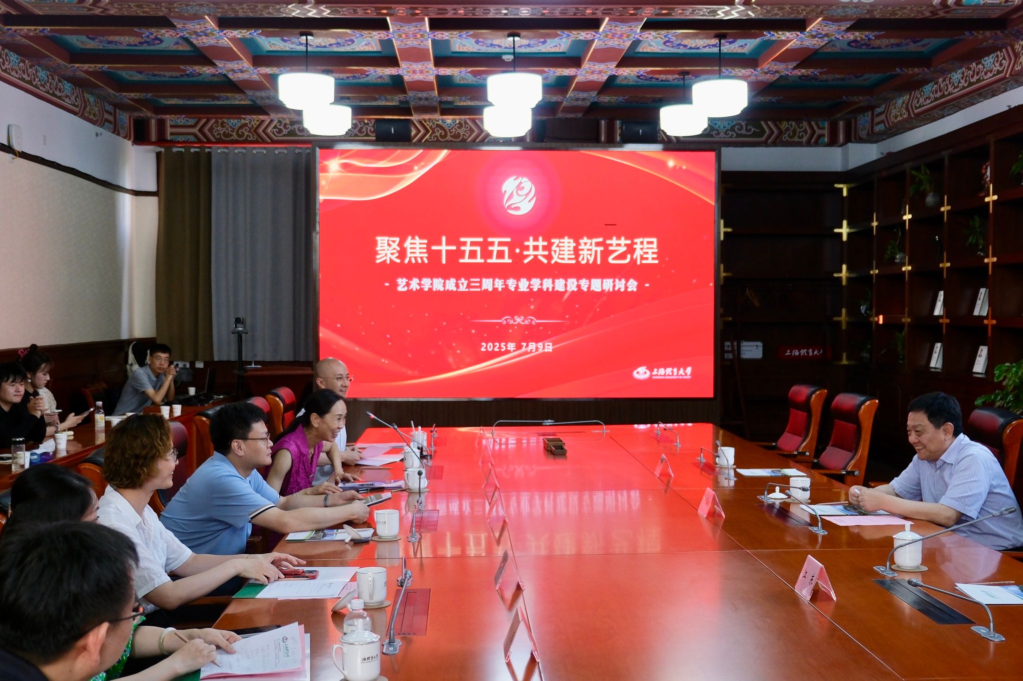 展演活动圆满结束后,与会专家学者与艺术学院全体教师移步绿瓦大楼第四会议室,共同参与学科专业建设专题研讨会,会议由艺术学院副院长林毅主持。