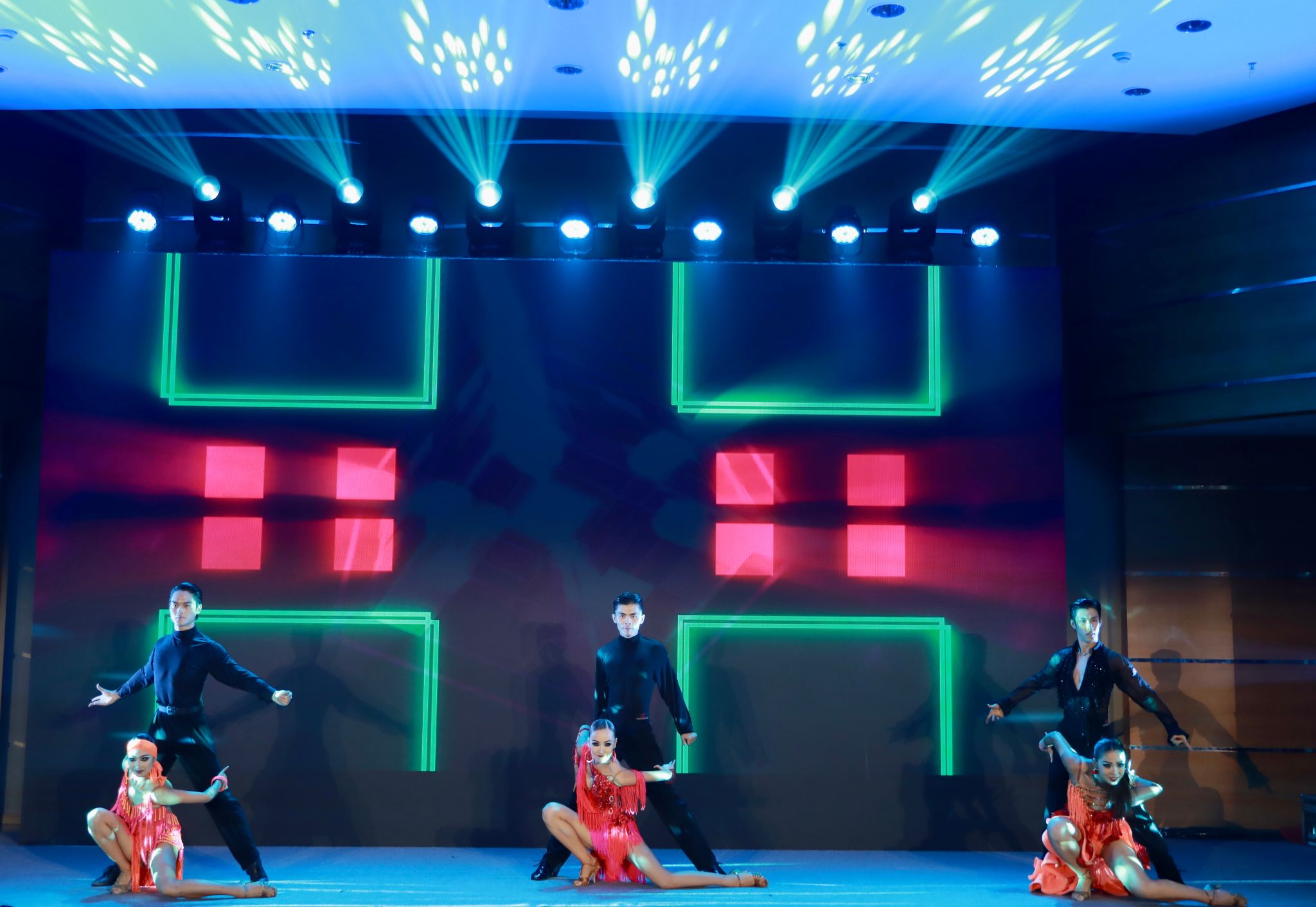 由体育舞蹈校代表队热情演绎的《拉丁风暴》,其成员在第十八届全国体育舞蹈锦标赛最高组别中勇夺亚军与季军,以耀眼的赛场成绩展示了他们对舞蹈艺术的执着追求,更为演出注入了昂扬向上的竞技精神与专业魅力。