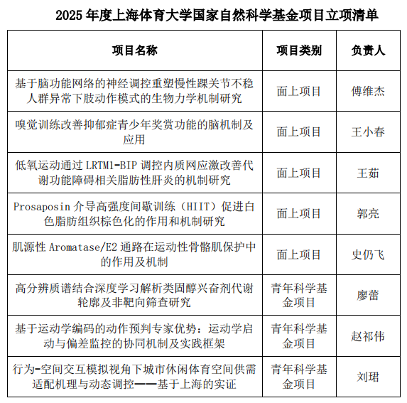 我校获批项目分布于生命科学部、数理科学部、化学科学部、医学科学部和地球科学部等多个学部,研究领域涉及康复治疗与康复机制、天然生物材料、仿生与运动生物力学、生命与公共安全分析、应用心理学与运动心理学、整合生理学与整合生物学、脂肪组织生理调控与功能异常、人文地理等广泛领域,项目研究跨越传统学科边界,具有鲜明的“体育+”特色,形成了多学科知识与方法相结合的创新模式,凸显了交叉学科研究给体育院校发展带来的创新点与增长点,彰显了我校前瞻性把握学科发展前沿、拓展学科研究新方向的创新能力及科研实力,是学校历年来高度重视学科交叉融合,重服务、强贡献,着力提升为“科”服务为“产”育人水平的重要体现,是学校“双一流”建设世界一流学科的重要支撑。
