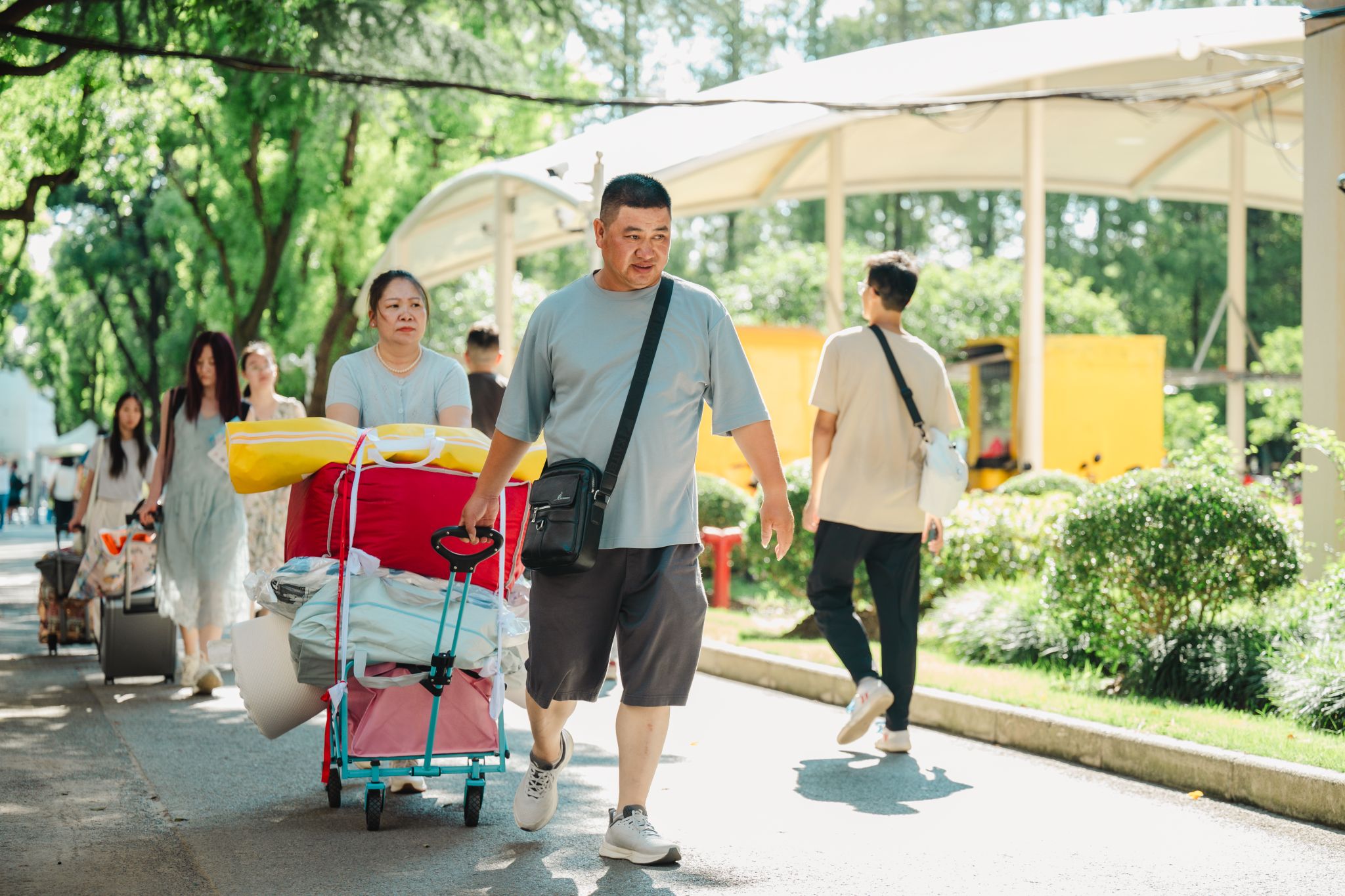 从校门到宿舍,从报到区到休息点,随处可见身着彩色马甲的学生志愿者忙碌的身影。他们穿梭在人群之中,答疑解惑、搬运行李、指引路线,以实际行动传递着上体人的热情与担当,实现从校门到宿舍全程无忧办理。后勤部门保障人员协同护航:食堂叔叔阿姨准备好暖心解暑绿豆汤,“爱心帮帮车”驾驶员往返穿梭,贴心服务,全力保障新生能顺利入学。