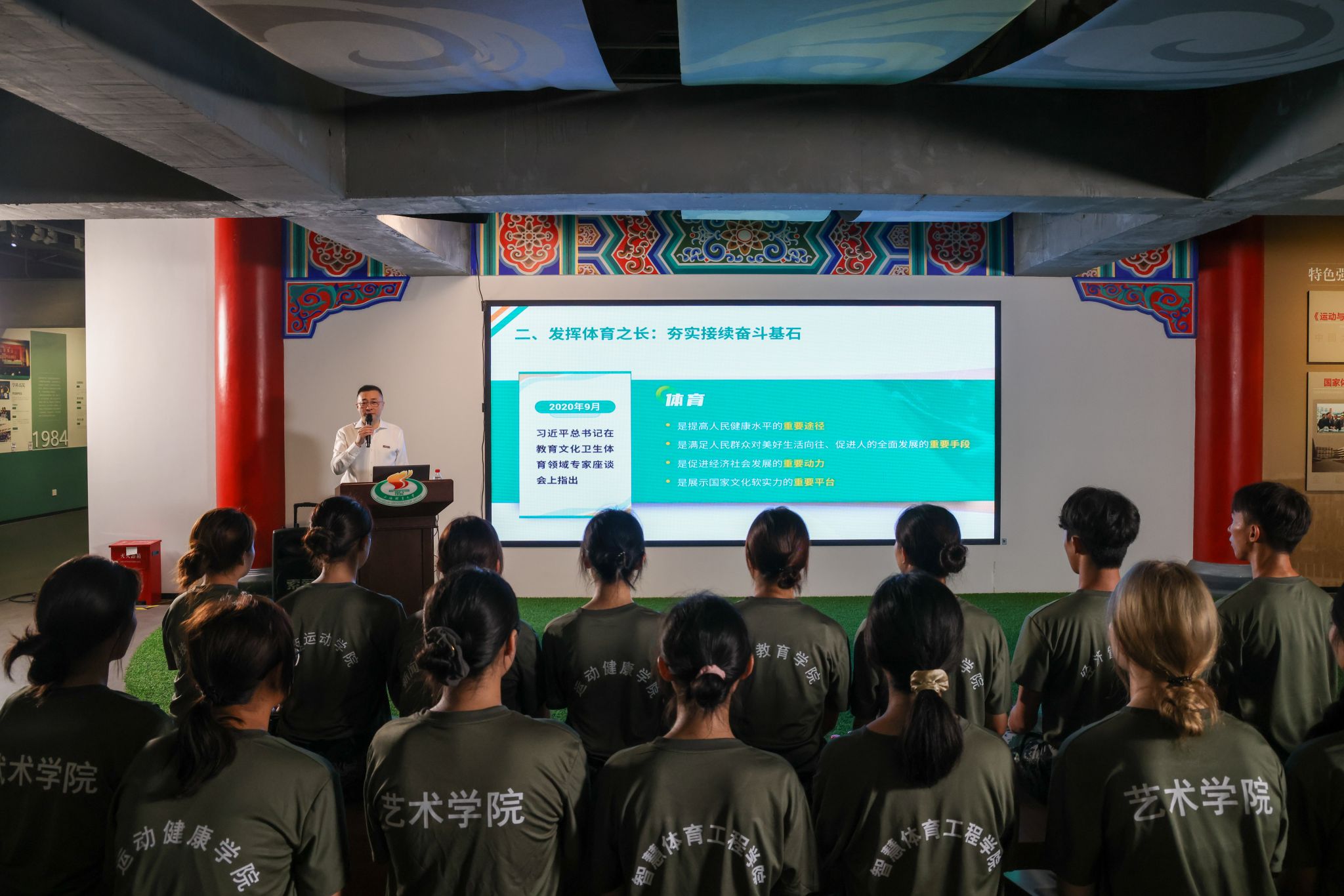 围绕习近平总书记在纪念中国人民抗日战争暨世界反法西斯战争胜利80周年大会上的重要讲话和关于体育的“四个重要”论述,李崟指出,从延安时期“锻炼体魄,好打日本”的红色体育热潮,到如今体育强国、健康中国战略向纵深推进,体育始终是民族复兴的重要力量。作为国家首批“双一流”建设高校,这份成绩更需新生接力传承。