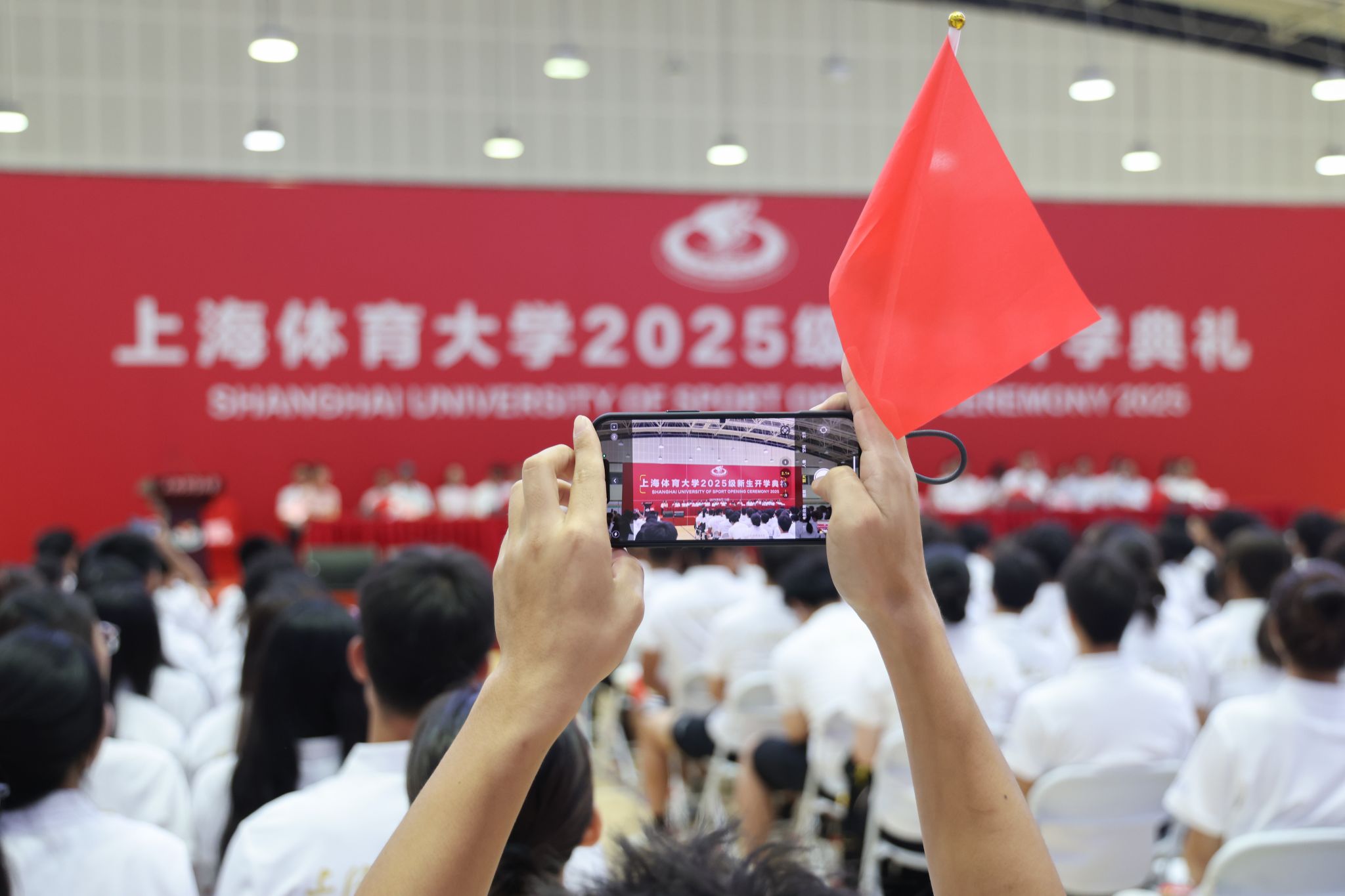2025级新生代表、智慧体育工程学院本科生黄明轩分享了自己的成长故事和选择上体学习智能体育的思考。他表示,作为新时代的数字体育人,将以数据科学为翼、以智能体育为舞台,以汗水为墨、以奋斗为笔,在上体书写好属于自己的青春篇章。