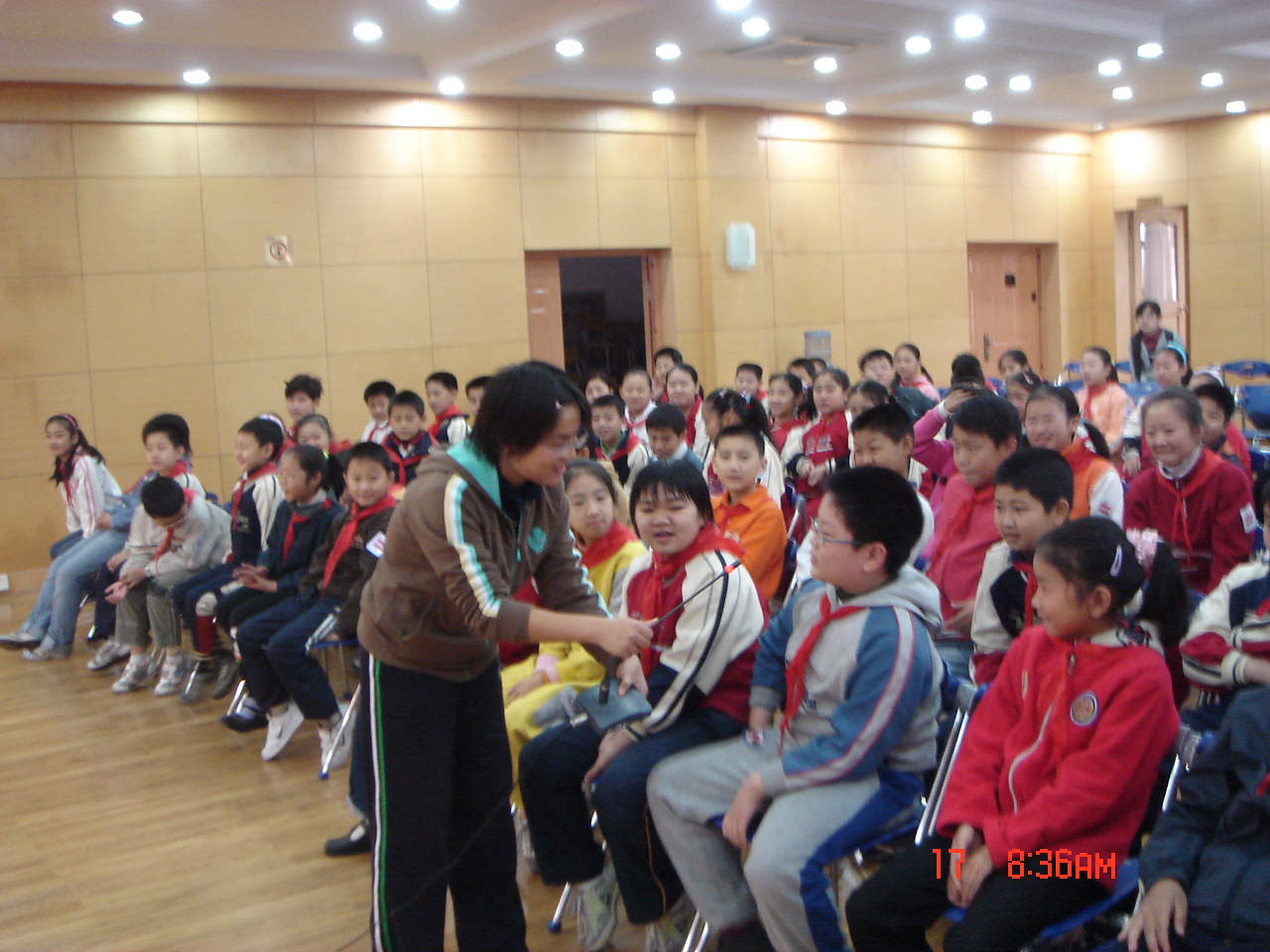 12月9日上午8:00,八大高校进园区之上体站健康行活动在杨浦区六一小学正式拉开帷幕。本次活动由我院和上海理工大学共同举办,我院运动科学学院学生会和上海理工大学校红十字会承办。 在活动中,首先我院和上海理工大学各派了一名安全大使即健康大使分别为六一小学的学生们做了一个小型的专题讲座,主要围绕“禁烟、健康、环保、法律”四个 主题,给同学们介绍了体育锻炼、饮食健康、心理健康及骨髓捐献等方面的知识。通过讲解,同学们增强了健康方面的意识,更加的密切关注并积极参与到活动中 来。