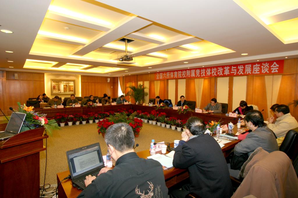 2006年12月29日,国家体育总局科教司在我院主持召开了全国六所体育院校附属竞技体校“改革与发展座谈会”,我院作为此次会议的承办单位。各院校对此会议非常重视,分别由院长或副院长带队,与各竞技体校的校长和副校长一同参加了会议。 会上,首先由姚颂平院长致欢迎词。科教司蒋志学司长对召开此次会议的目的做了重要讲话,他首先肯定了六所竞技体校在提高运动训练水平、提高运动员全面素 质、实施“亦读亦训”办学模式等方面做出的成绩和贡献,然后又指出了竞技体校在全国教育事业的大发展和2008年奥运会中面临的挑战。