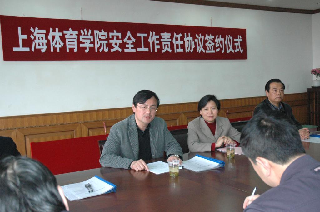3月27日下午,我院举行安全工作责任书签约仪式。院党委副书记、副院长戴健与相关处室、各系(院)、直属单位负责人签定了07~09年度安全工作责任书。院党委书记虞丽娟、副院长王义林出席了本次签约仪式,仪式由武保处处长黄顺章主持。 签约仪式中首先由院党委副书记、副院长戴健总结回顾了我院04~06年安全工作情况:我院在04~06年年度中学院及各单位领导重视,措施有力,狠抓落实,加大了人防、物防、技防的投入,确保了学院的政治安全、师生生命财产安全,并被授予“上海市安全文明校园”、“上海市教育系统综合治理先进单位”、“上海市平安校园”等称号。接着,党委副书记、副院长戴健同签约单位负责人签定了安全工作责任书。